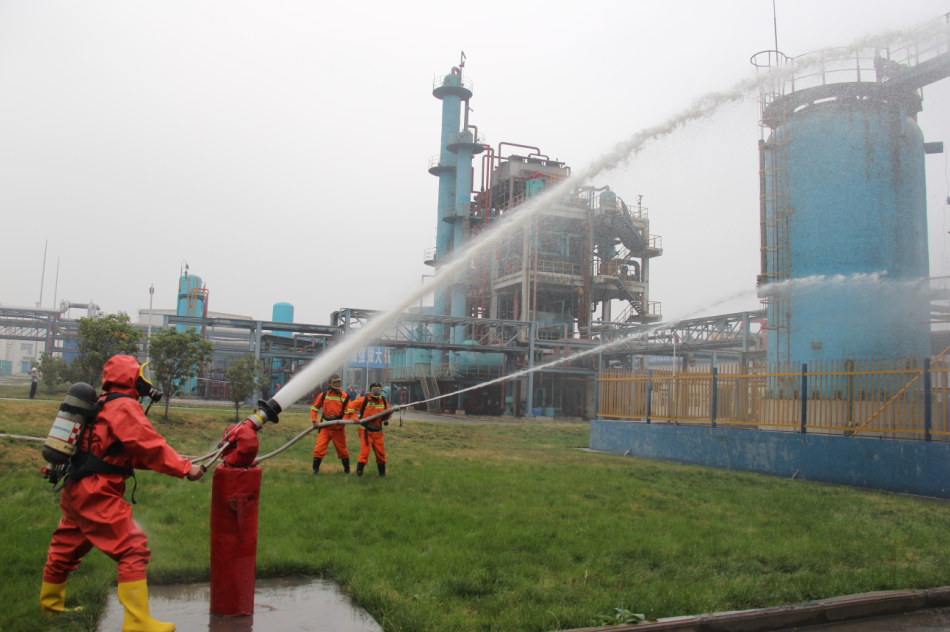 氯乙烯储槽属公司重大危险源,一旦发生事故危害性极大,本次演练也是该公司首次对外开放氯乙烯泄漏应急救援。为确保演练工作取得圆满成功,公司高度重视此次工作,制定了详细的演练方案,重在检验现场职工的快速反应能力、执行抢险的响应速度、以及各抢险分队的沟通协调能力,达到现场演练效果。