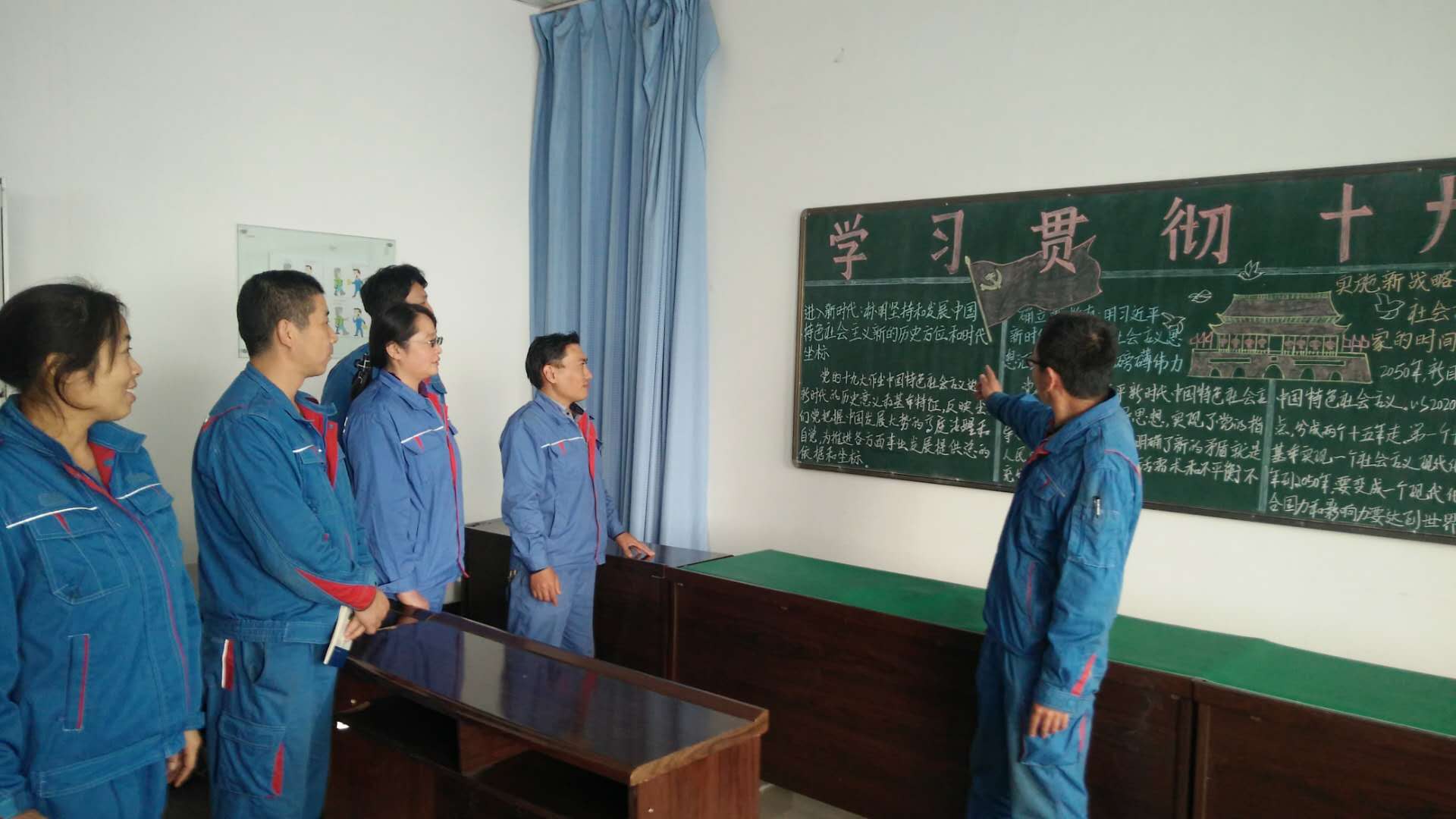 聚氯乙烯分厂党支部组织15名党员、干部利用板报,学习、领会十九大精神