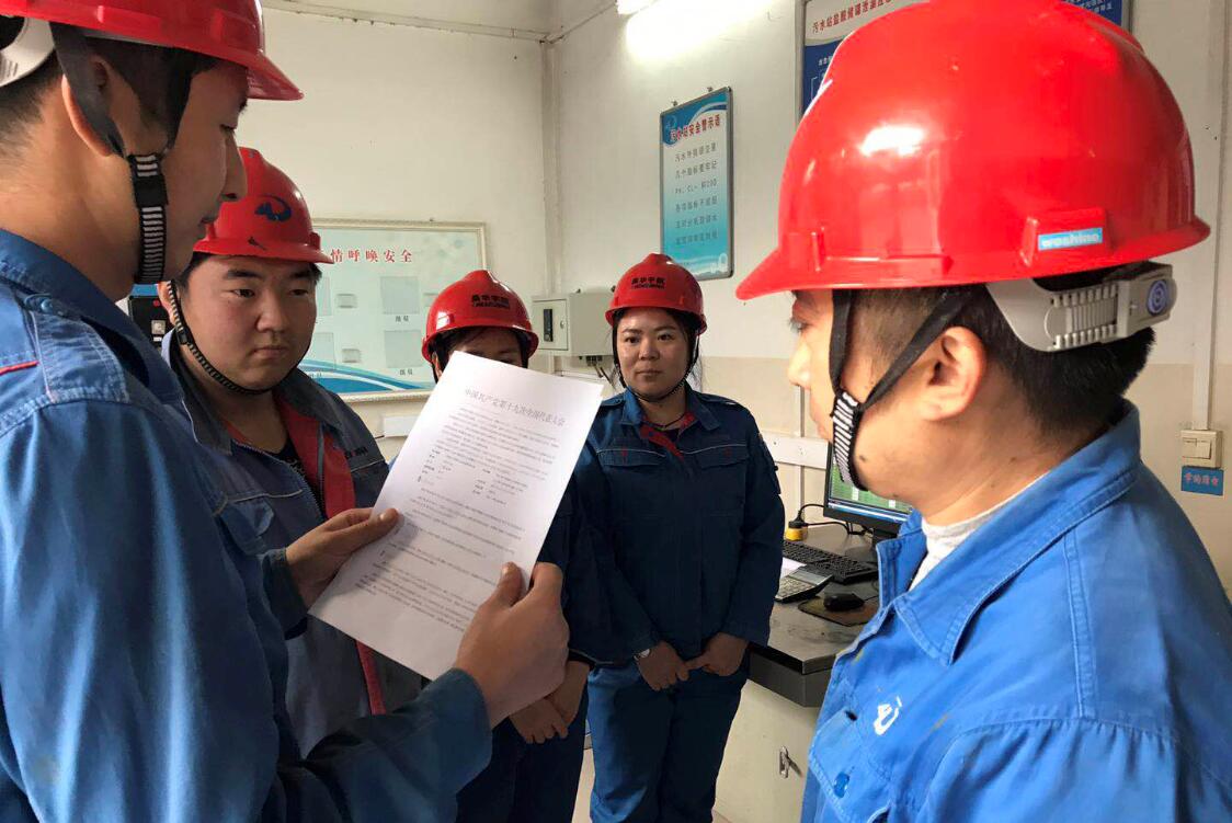 环保分厂职工利用班前喊话时间学习十九大报告内容