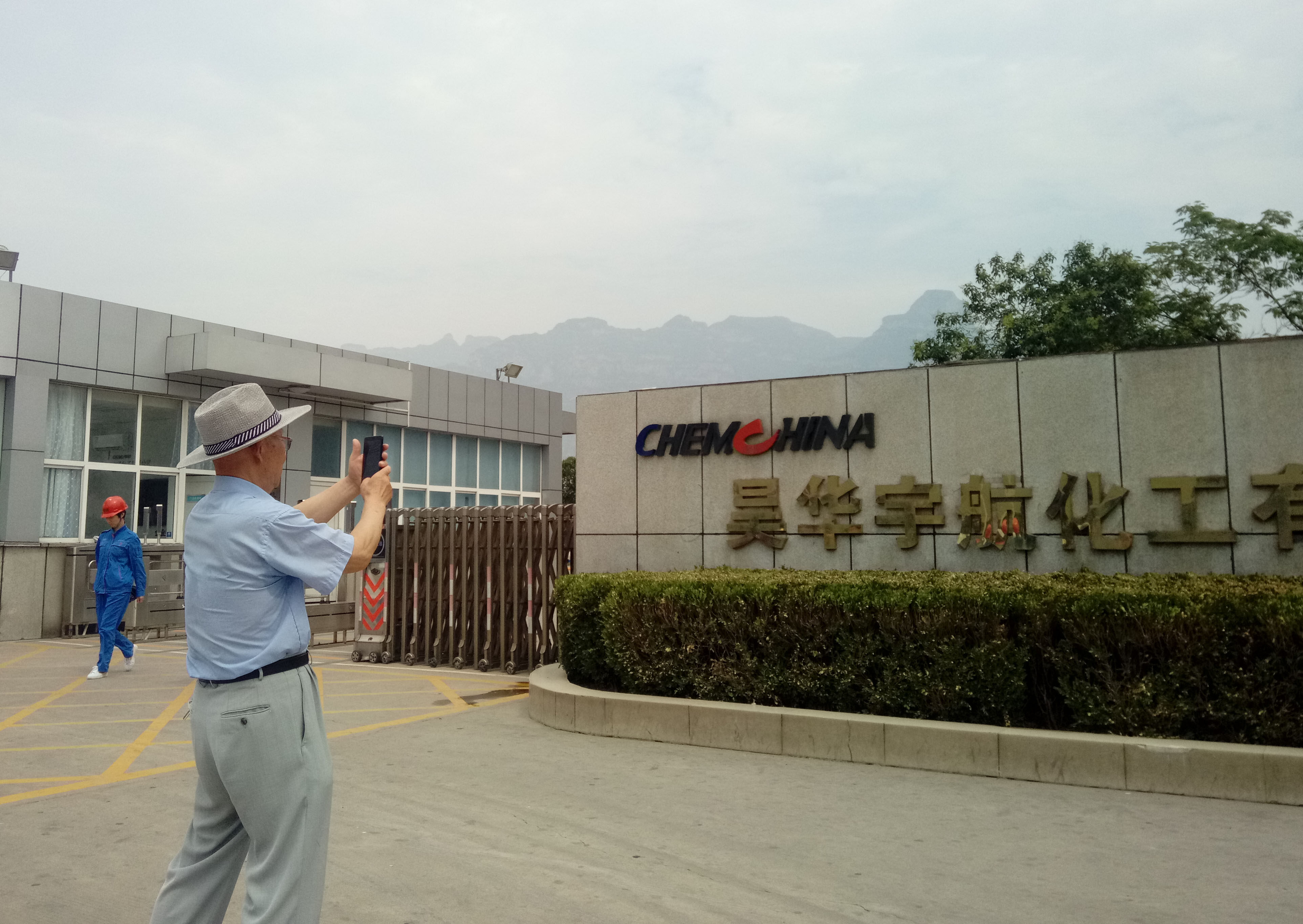 图为离退休干部葛慎士参观厂区后在门口留影纪念