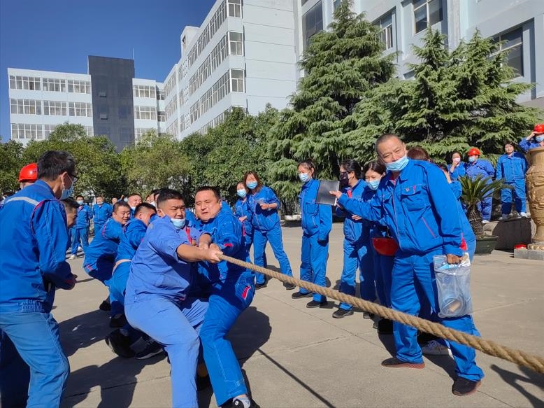 绳暴拽而将断,犹匍匐而不回。首先进行的是拔河比赛,“起绳,拉紧,预备——开始!”随着哨声响起,两侧职工蓄势即发,长绳紧握,弓马步稳扎,重心下压,集体后仰。咬紧牙关、眉头紧锁、红脸紧绷、拼尽全力、各引而向。一根绳、一个梦、一股劲、一条心,不仅仅是力量的较量,更是意志和毅力的角逐。观赛的职工句句加油,唱响拔河之战歌;声声呐喊,助力比赛高潮迭起。裁判员火眼金睛,严肃认真、公正准确,确保赛出精神、比出水平。就连公司领导也加入其中,指导战术,欲抓绳而不能,只能内运气于胸,用节奏掌控发力于外。紧张激烈的拔河比赛,精彩纷呈、扣人心弦,凝聚了力量、鼓舞了人心。