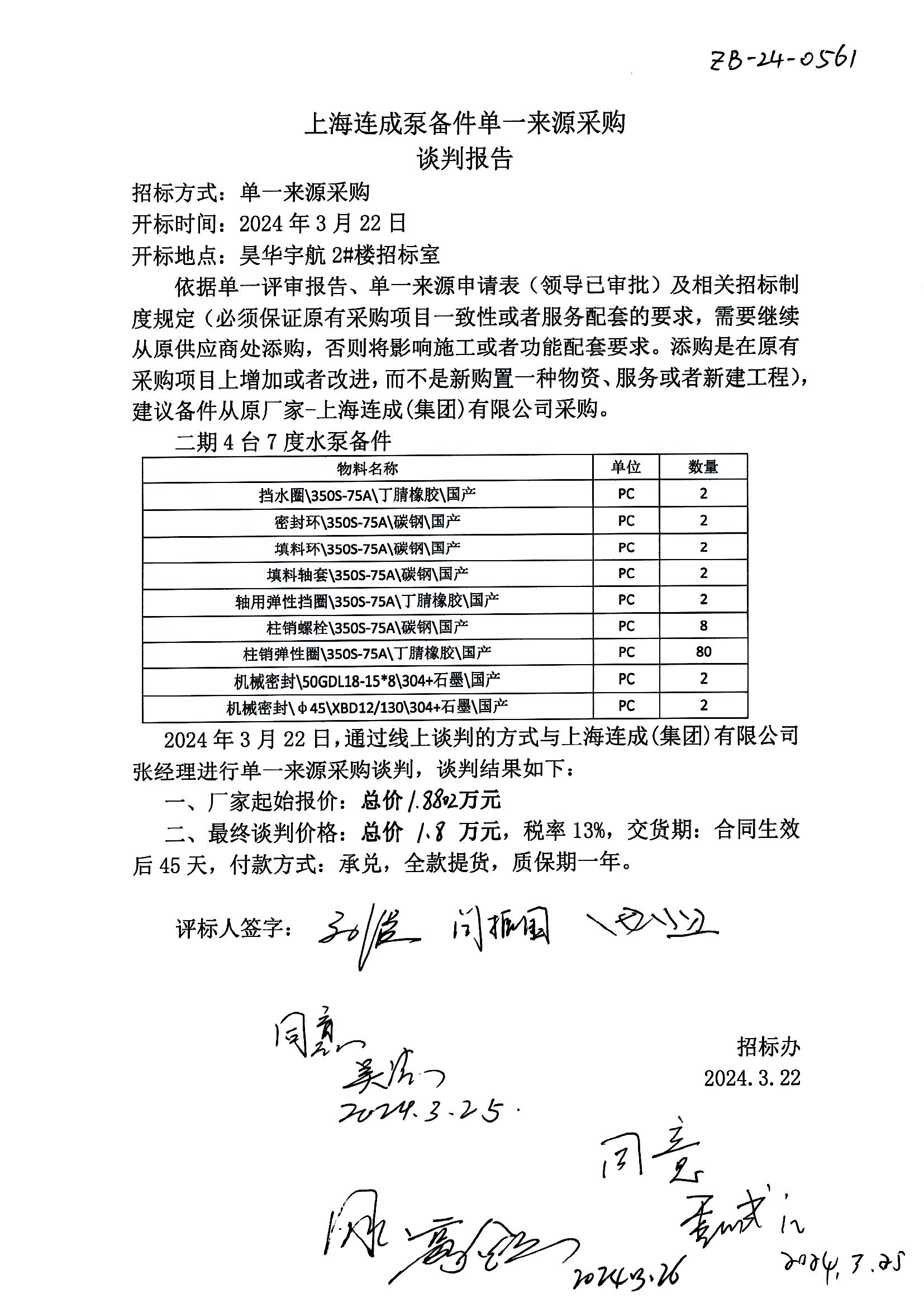 烧碱7度水泵备件采购单一来源谈判报告