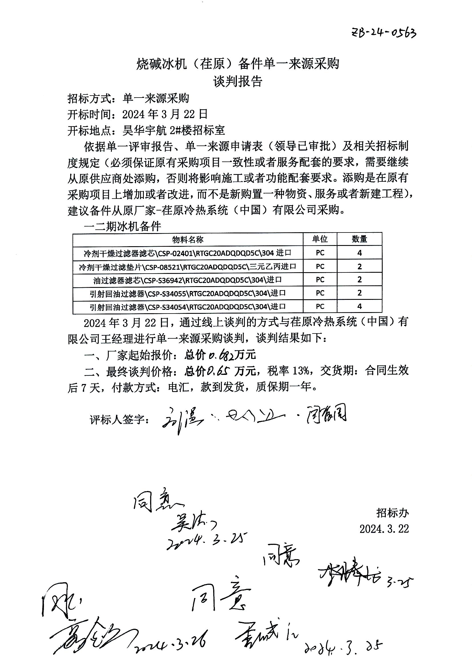 烧碱冰机(荏原)备件采购单一来源谈判报告