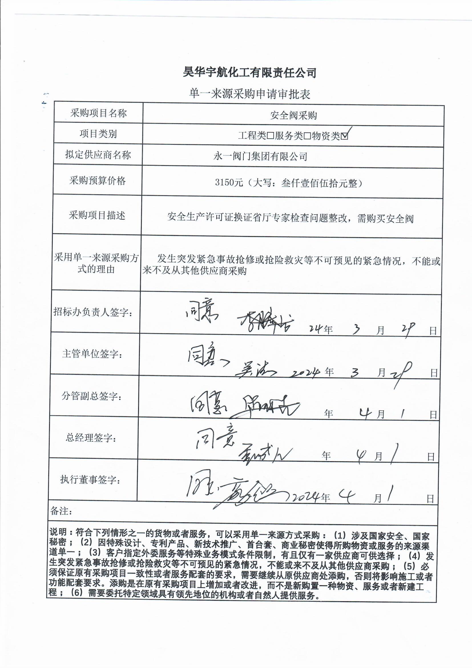 3. 拟定供应商:永一阀门集团有限公司