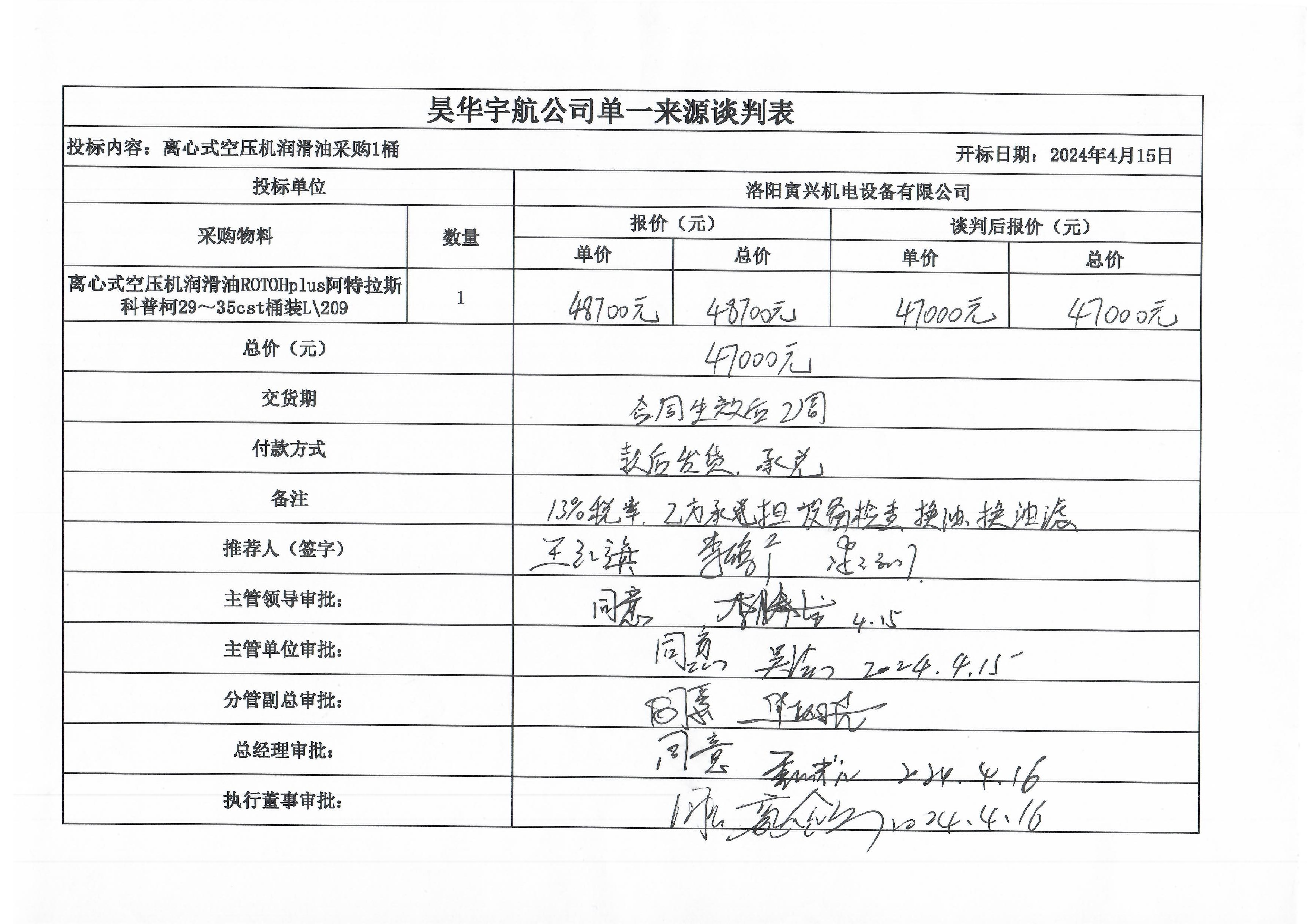 1. 项目名称:离心式空压机润滑油采购