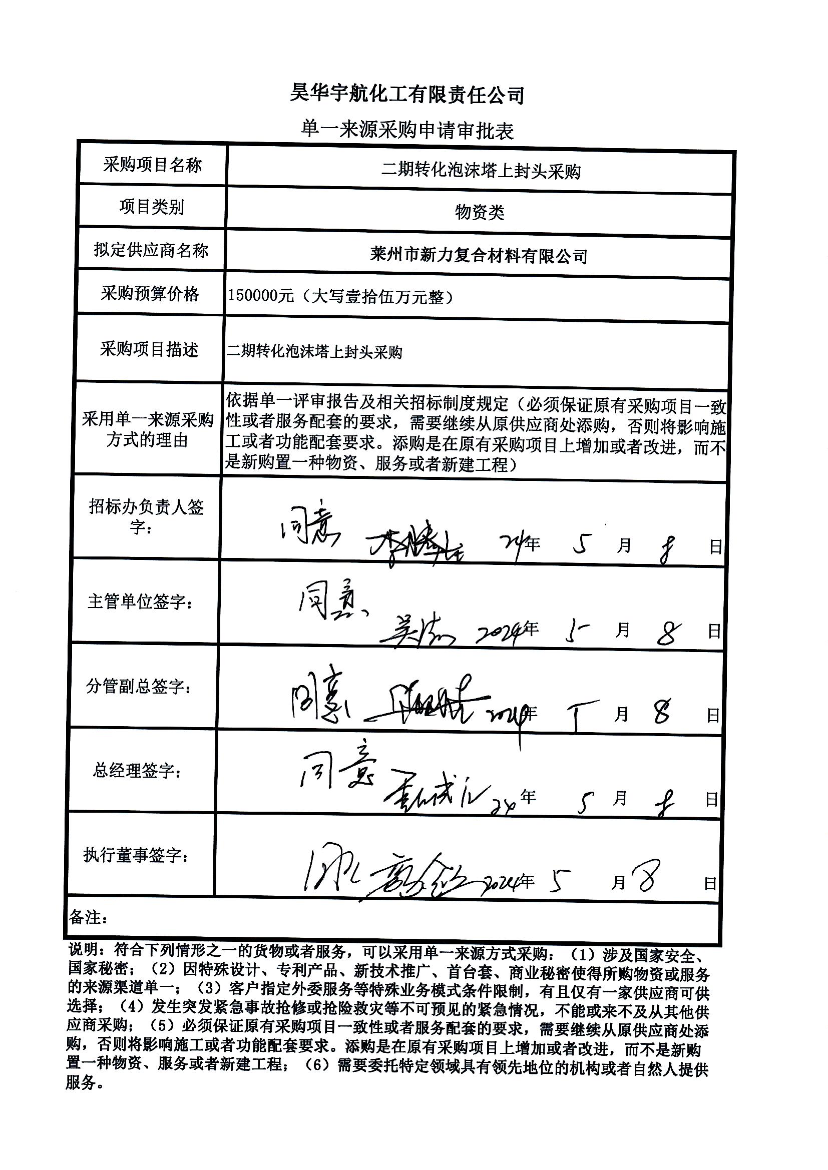 1. 项目名称:二期转化泡沫塔上封头采购