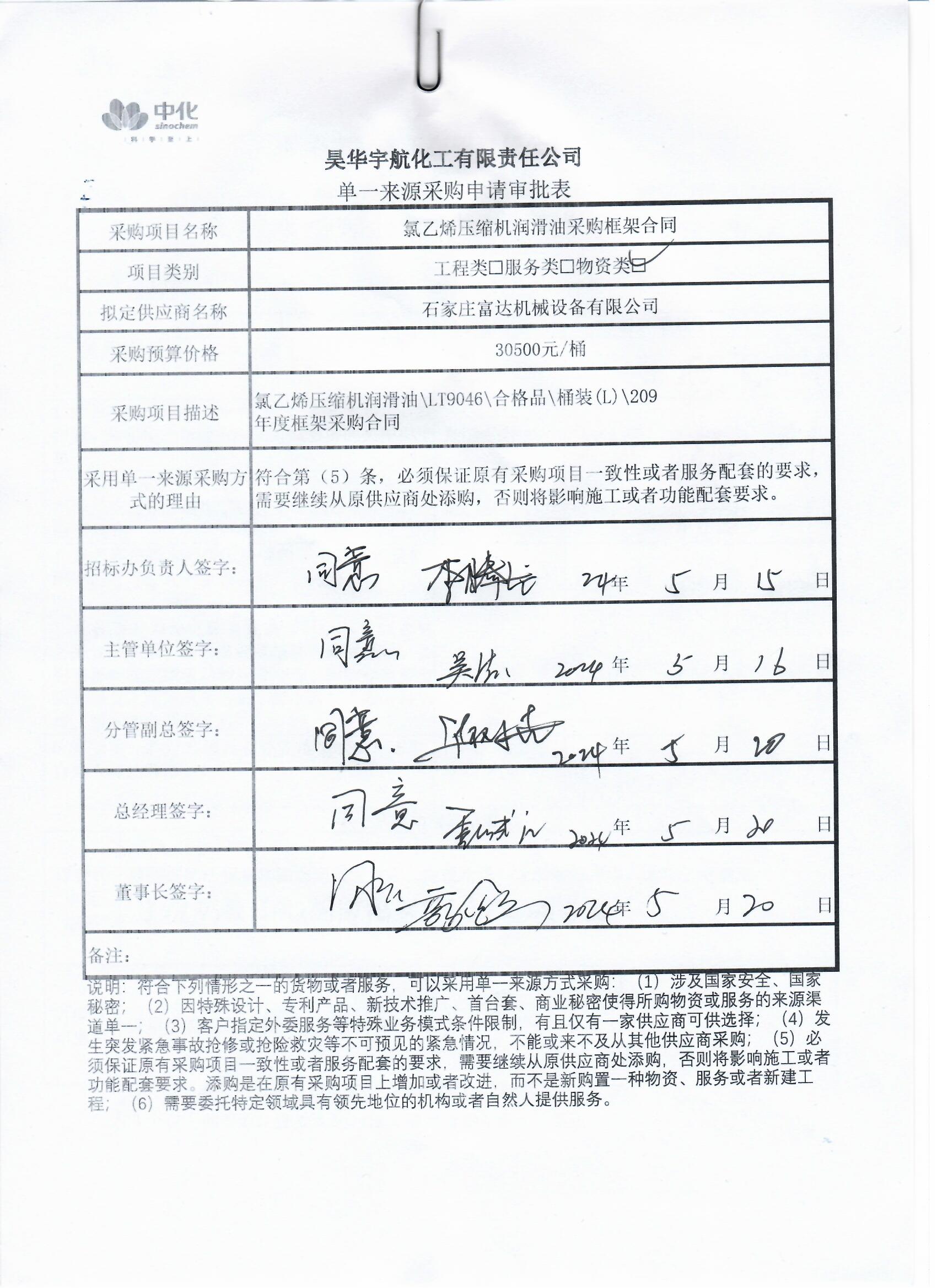 1. 项目名称:氯乙烯压缩机润滑油采购框架