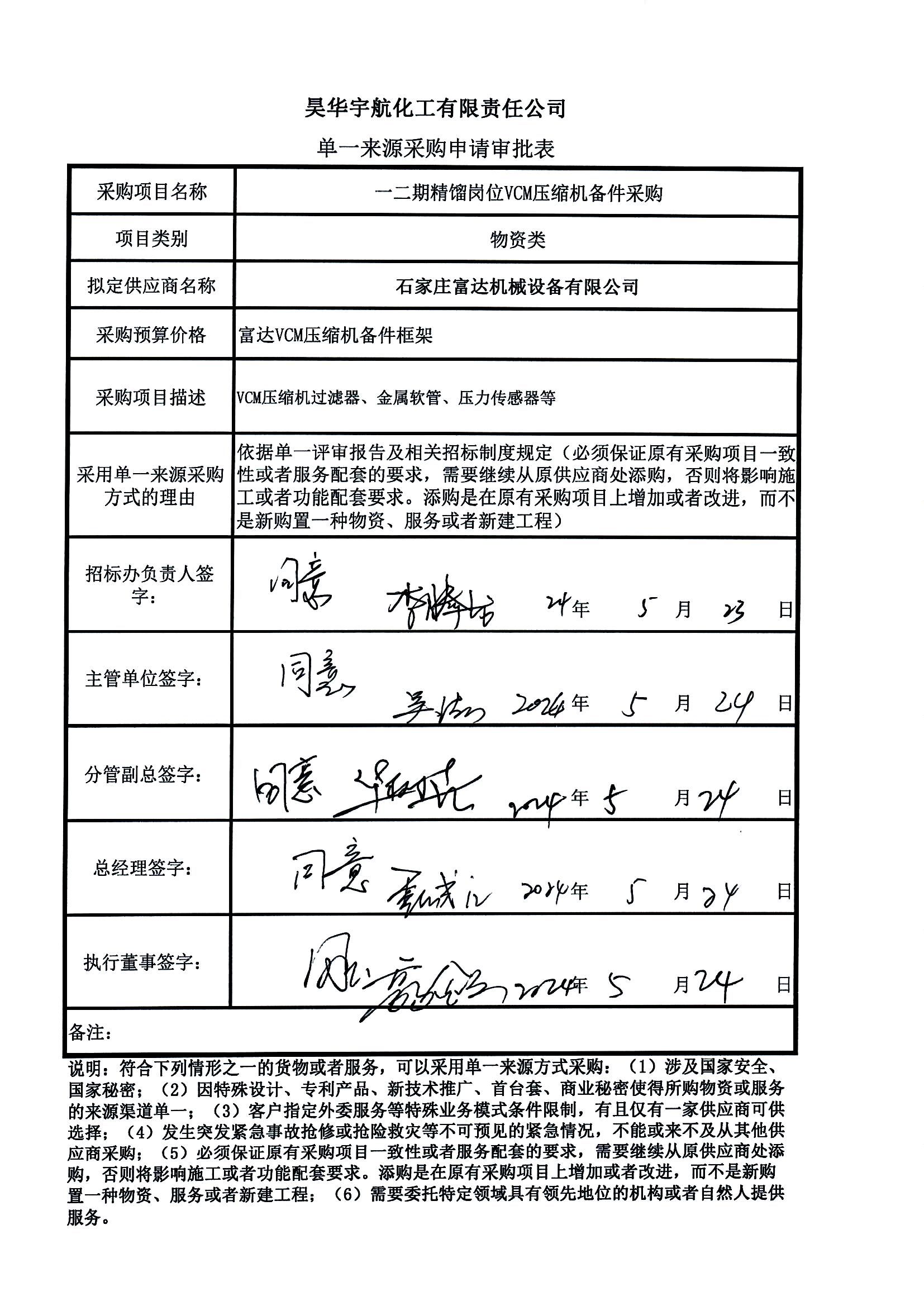 1. 项目名称:一二期精馏岗位VCM压缩机备件采购