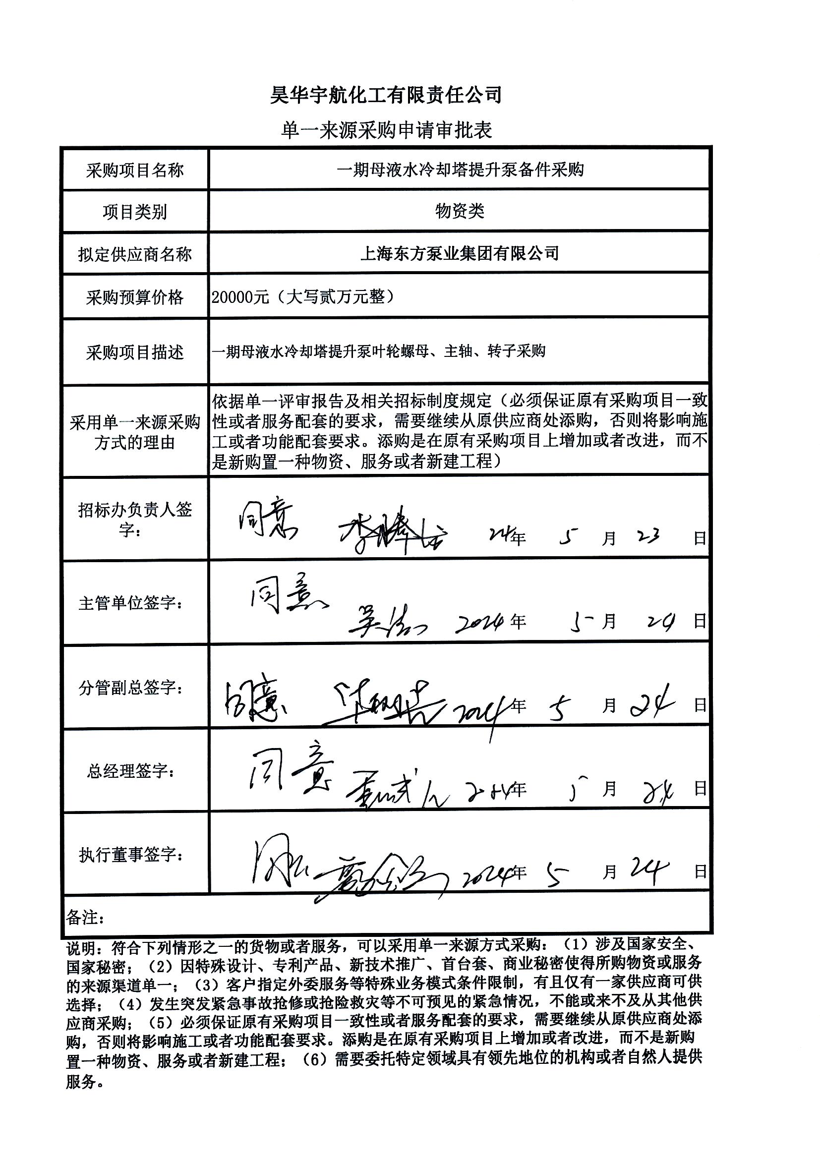 1. 项目名称:一期母液水冷却塔提升泵备件采购