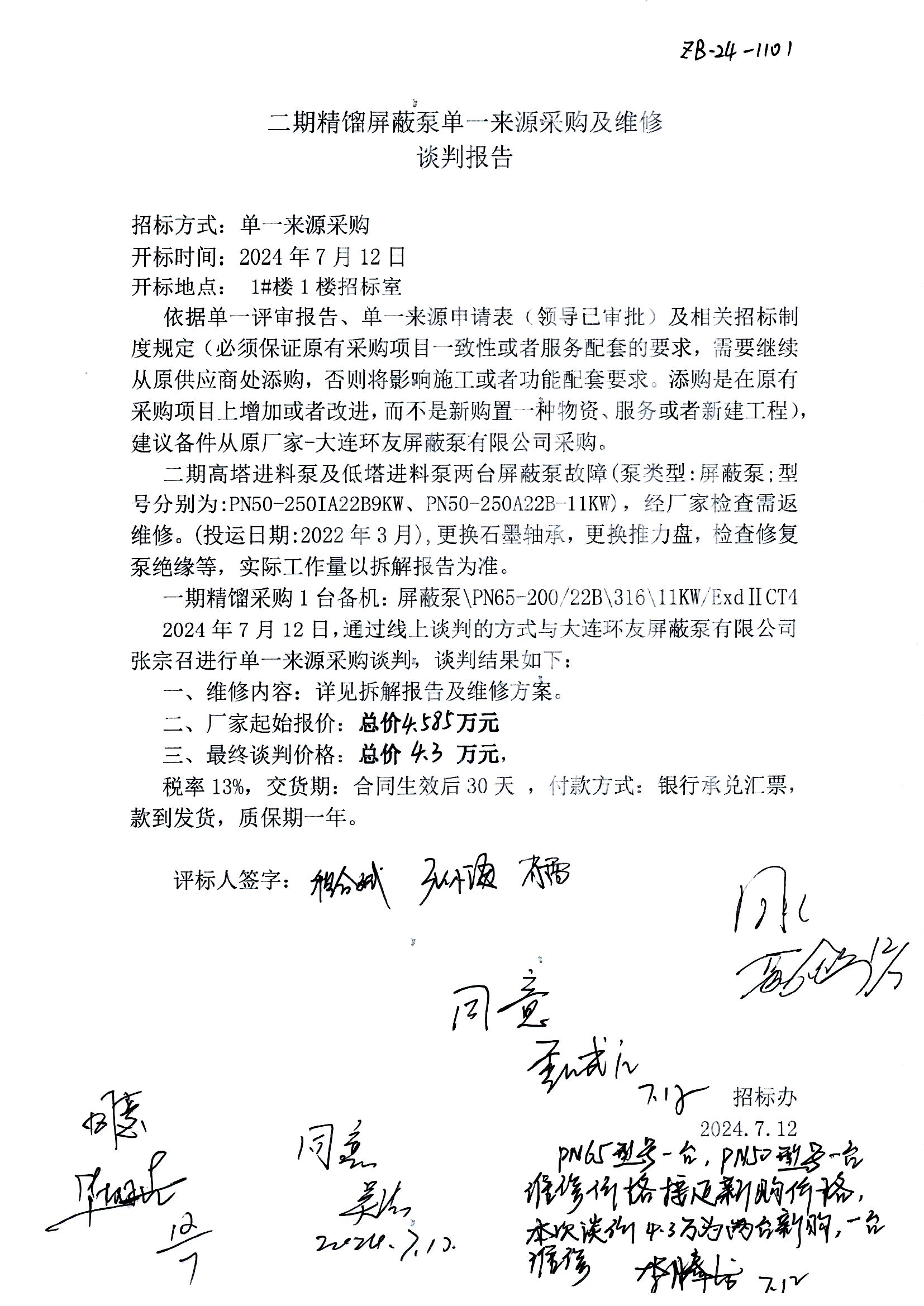 3. 拟定供应商:大连环友屏蔽泵有限公司