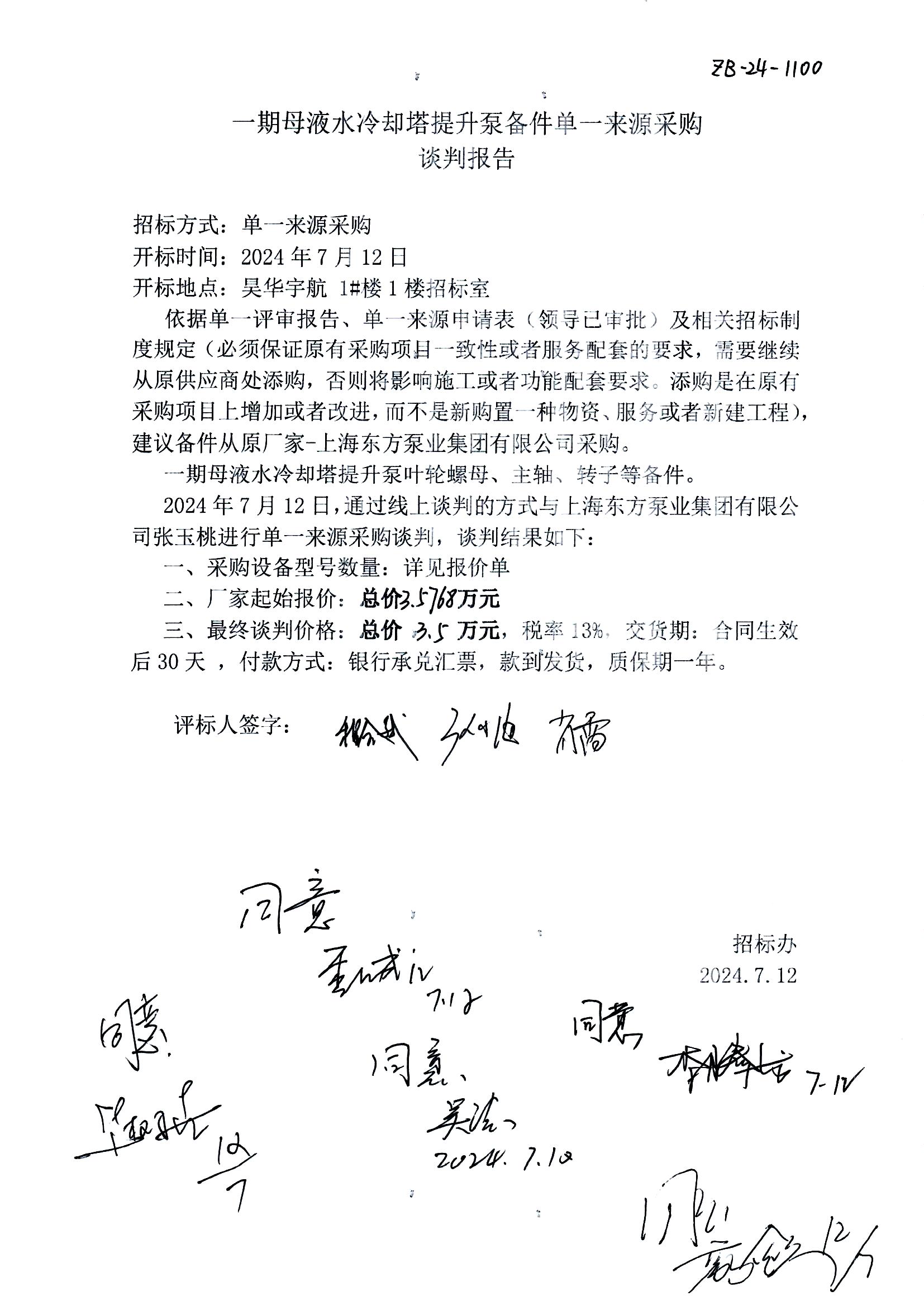 1. 项目名称:一期母液水冷却塔提升泵备件采购
