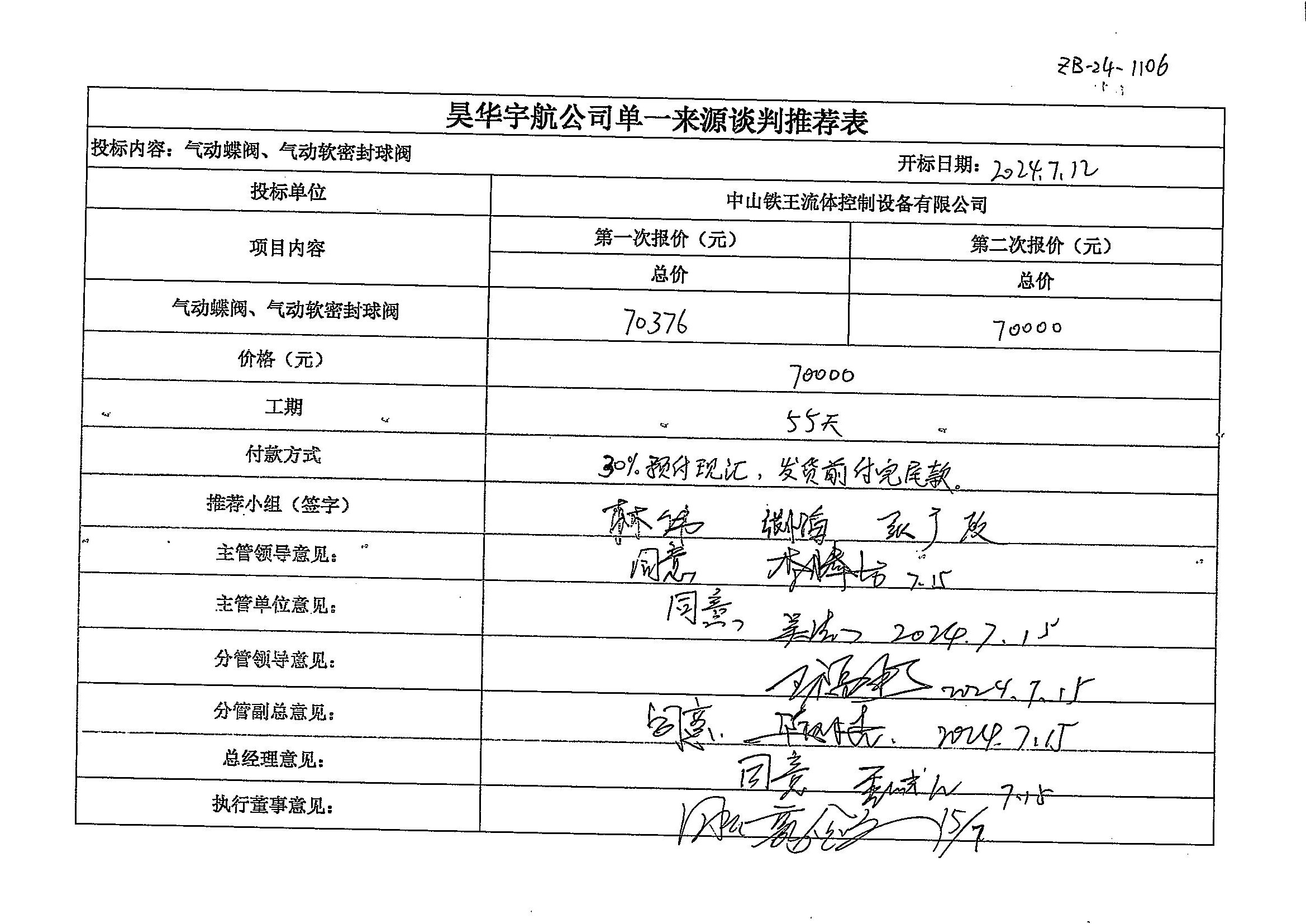3. 拟定供应商:中山铁王流体控制设备有限公司