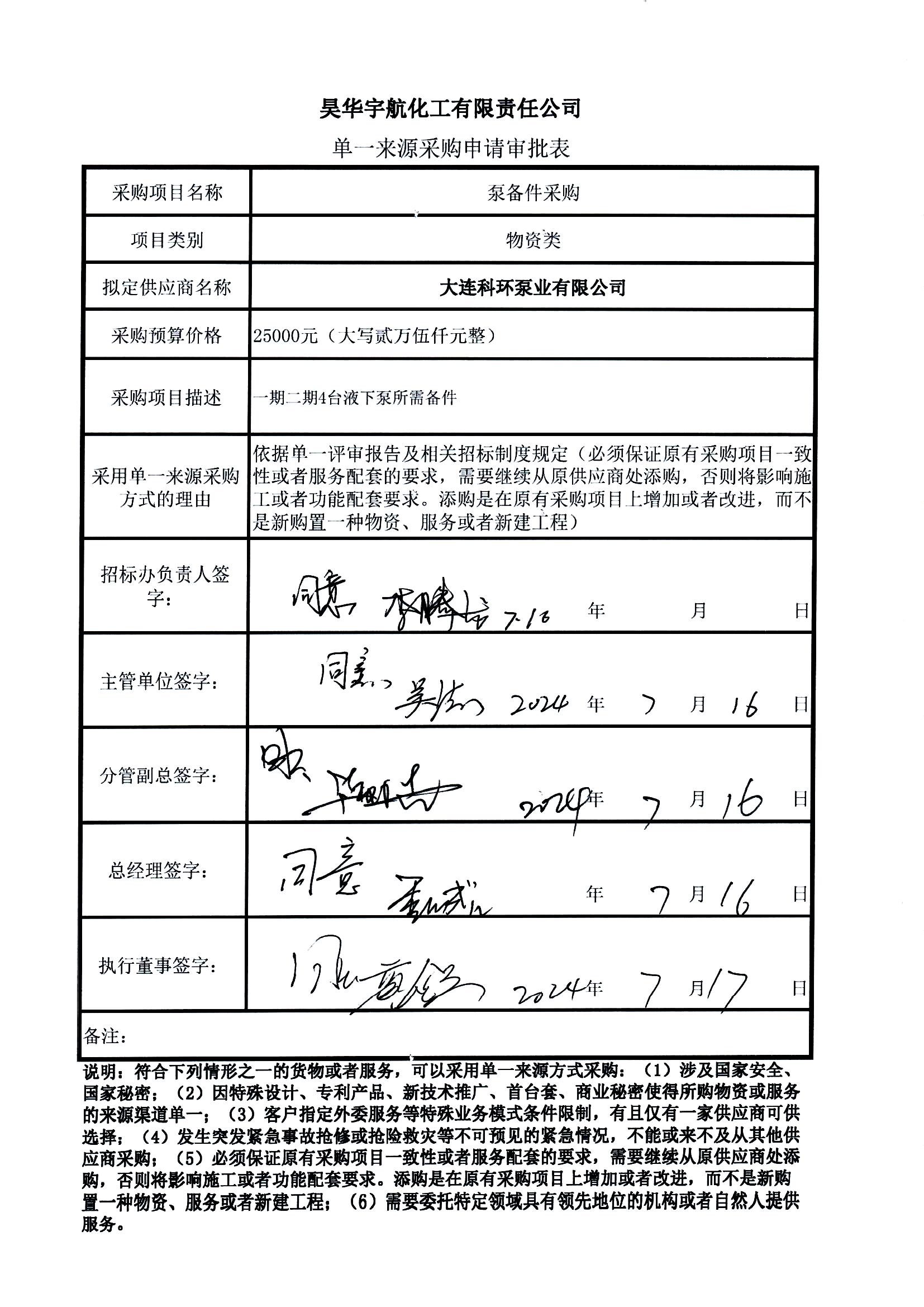 3. 拟定供应商:大连科环泵业有限公司