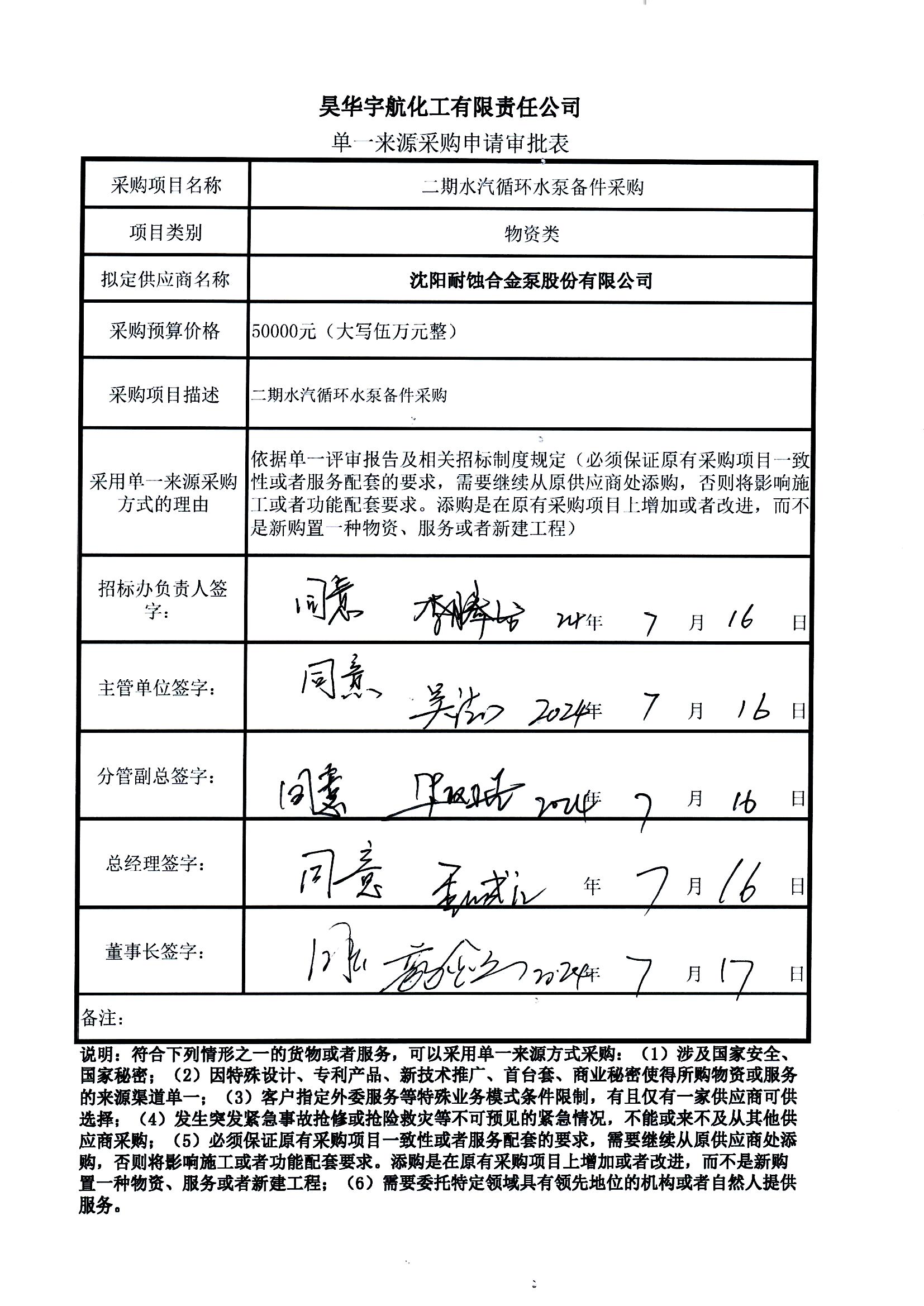 3. 拟定供应商:沈阳耐蚀合金泵股份有限公司