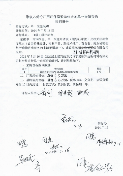 1. 项目名称:PVC分厂更换环保型紧急终止剂