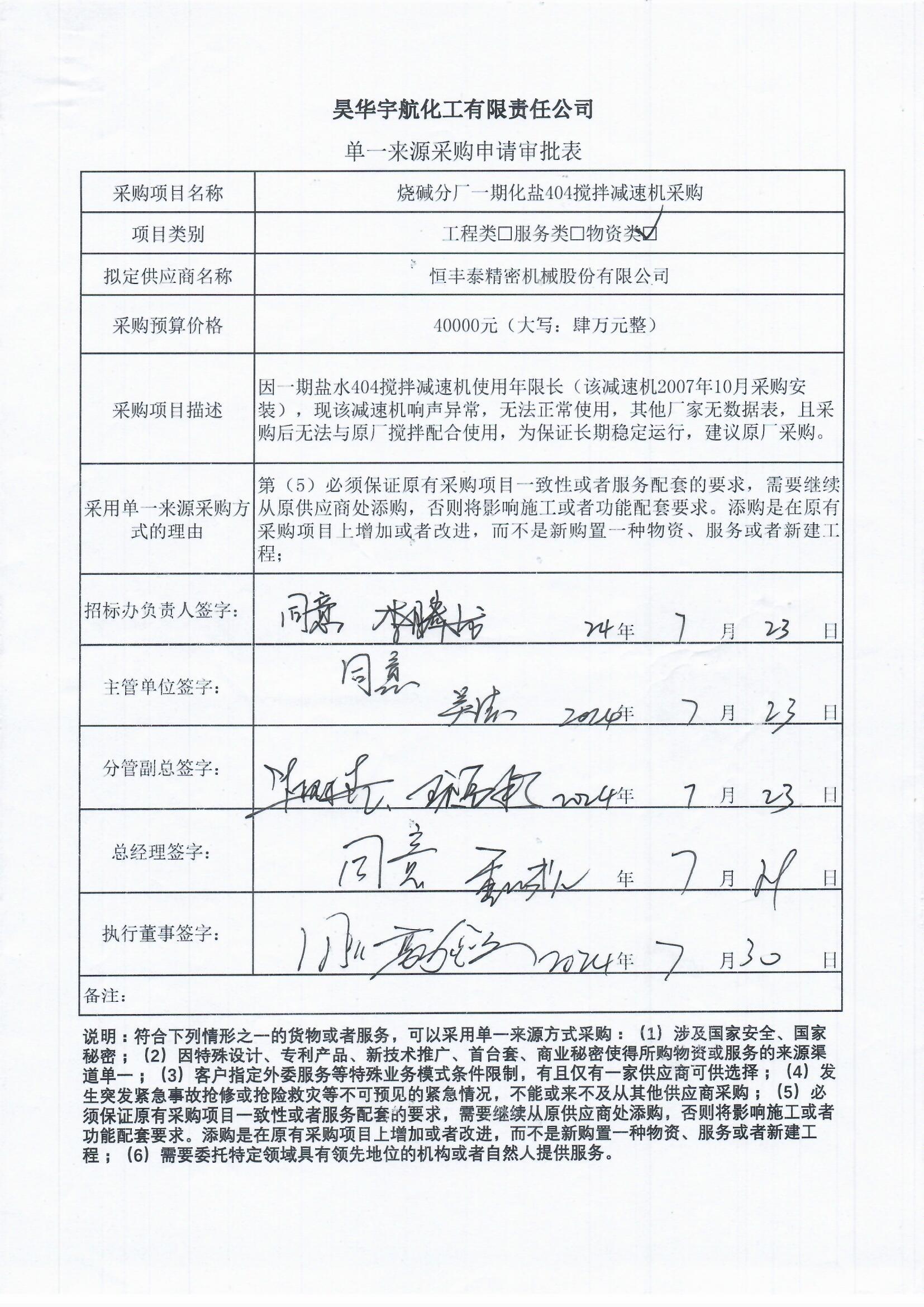 1. 项目名称:烧碱分厂一期化盐404搅拌减速机采购