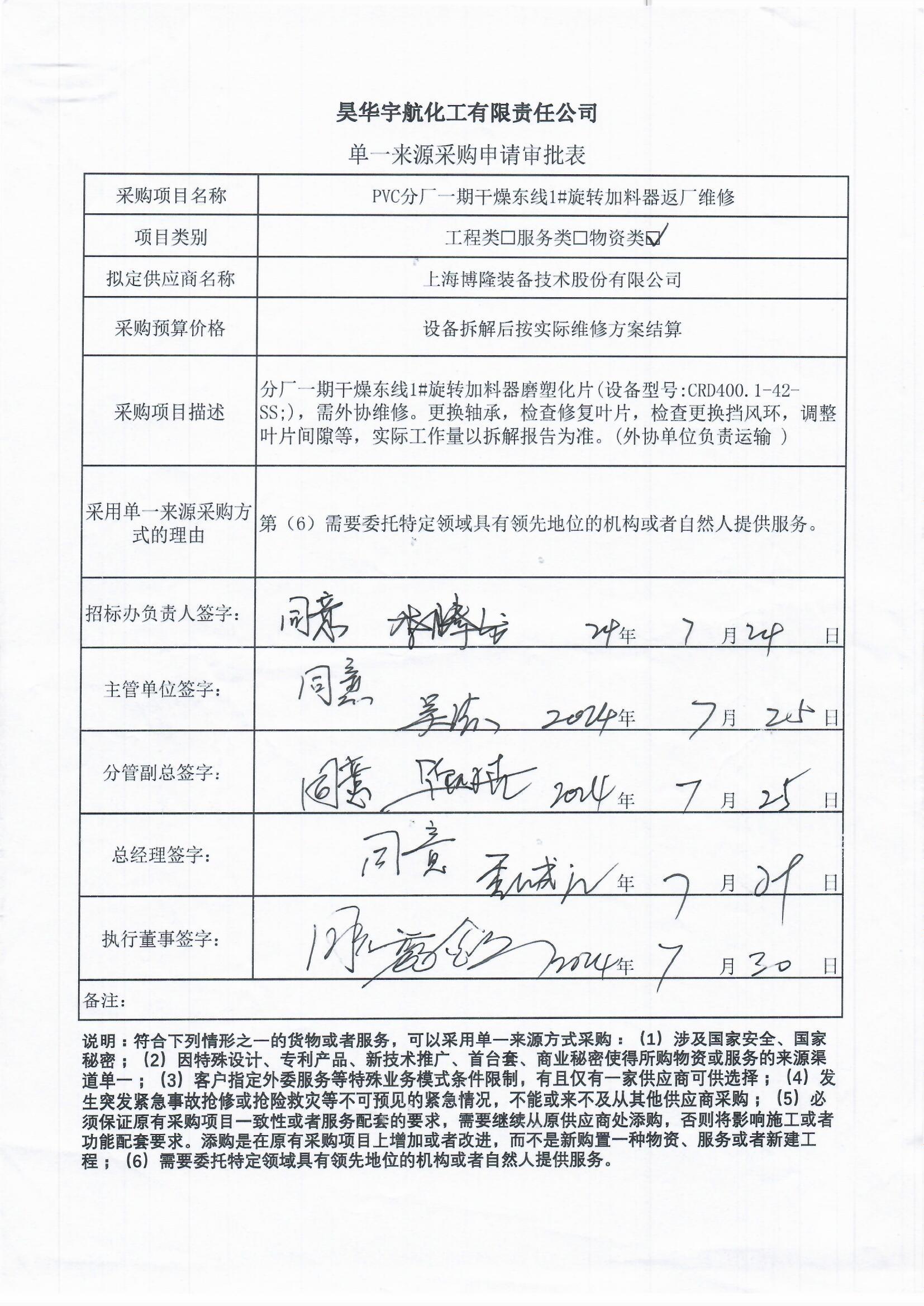 1. 项目名称:PVC分厂一期干燥东线1#旋转加料器返厂维修