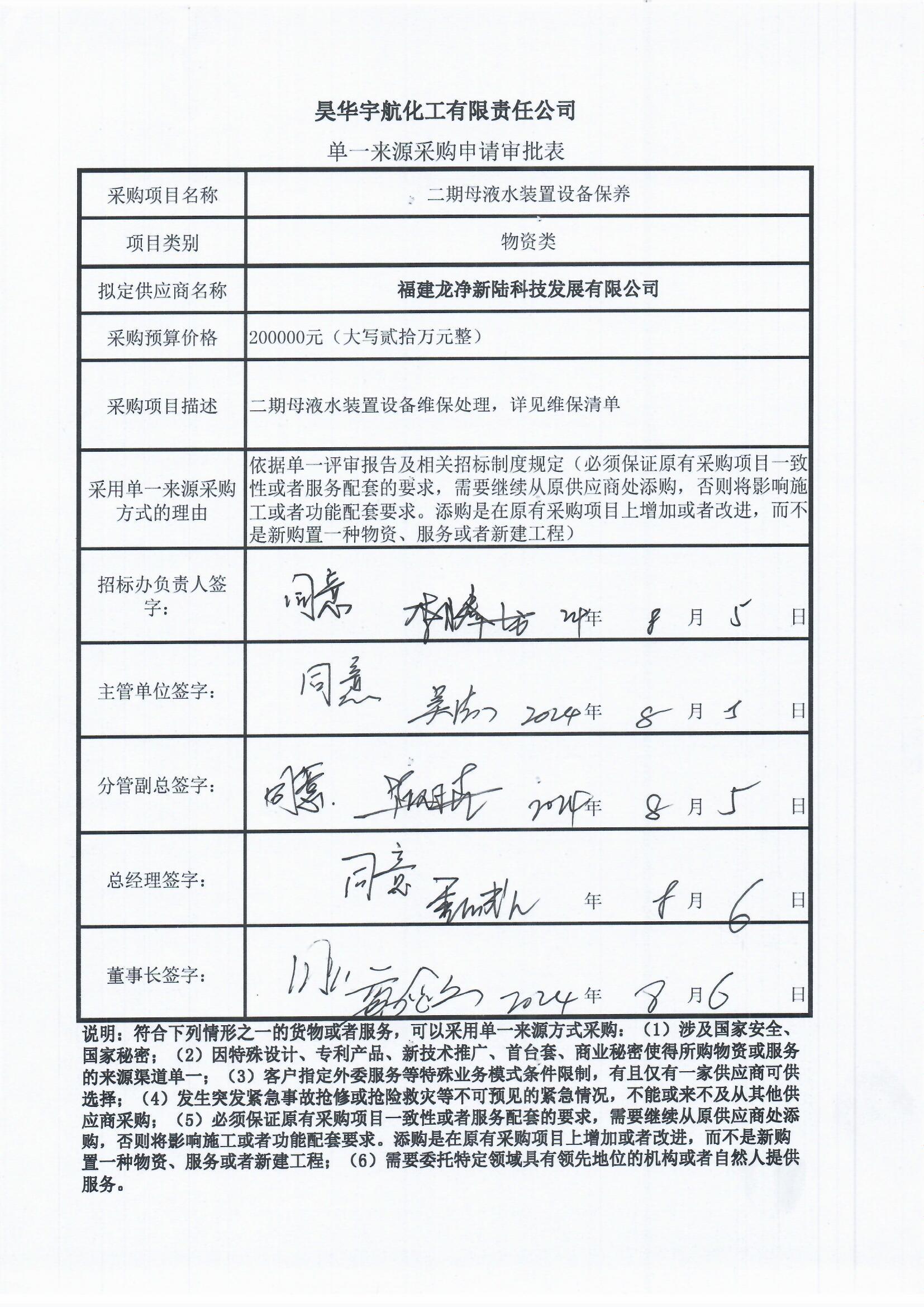 3. 拟定供应商:福建龙净新陆科技发展有限公司
