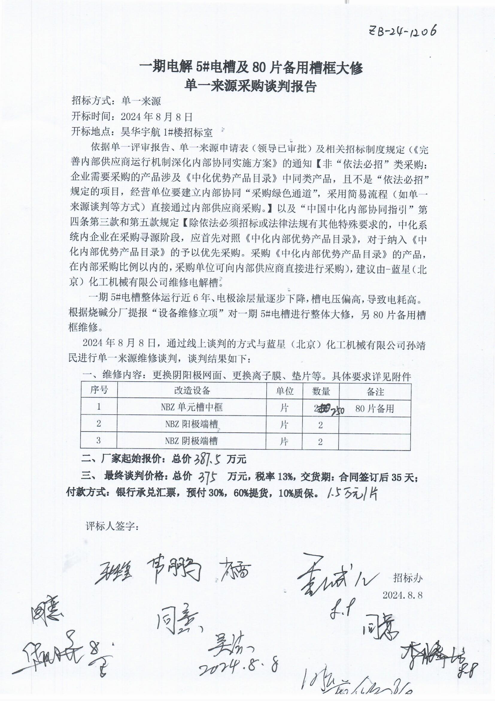 1. 项目名称:电解槽框维修
