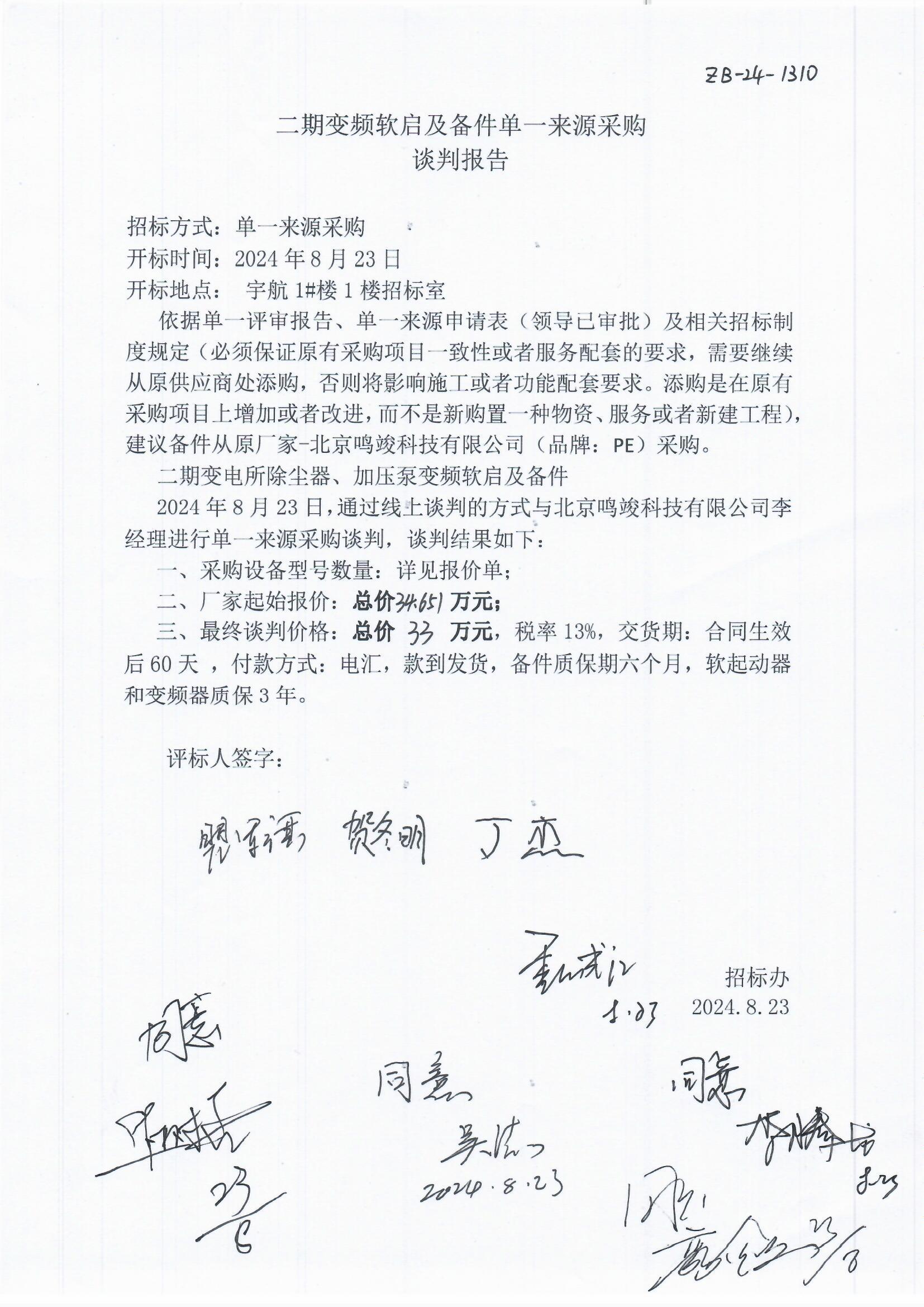 1. 项目名称:二期变频软启及备件采购