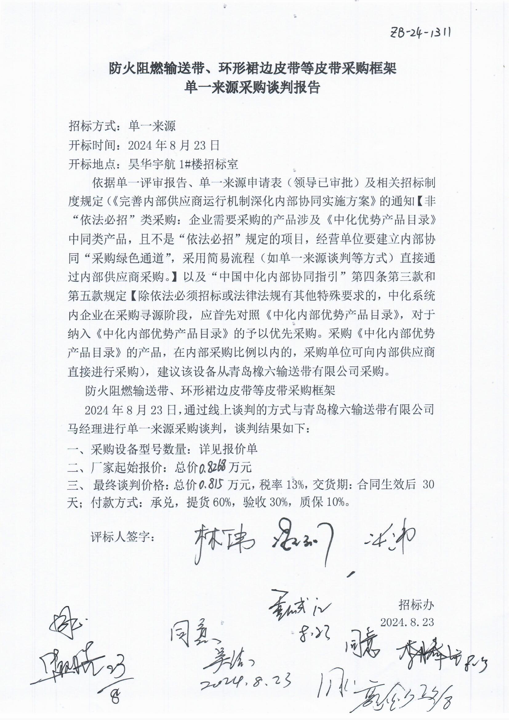3. 拟定供应商:青岛橡六输送带有限公司