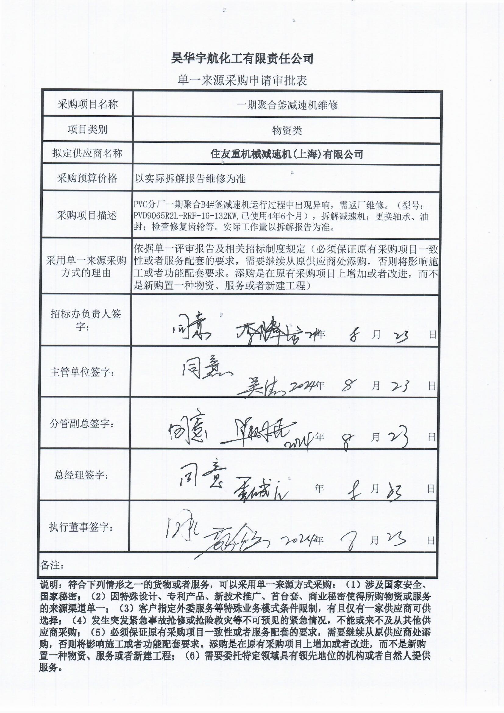 3. 拟定供应商:住友重机械减速机(上海)有限公司