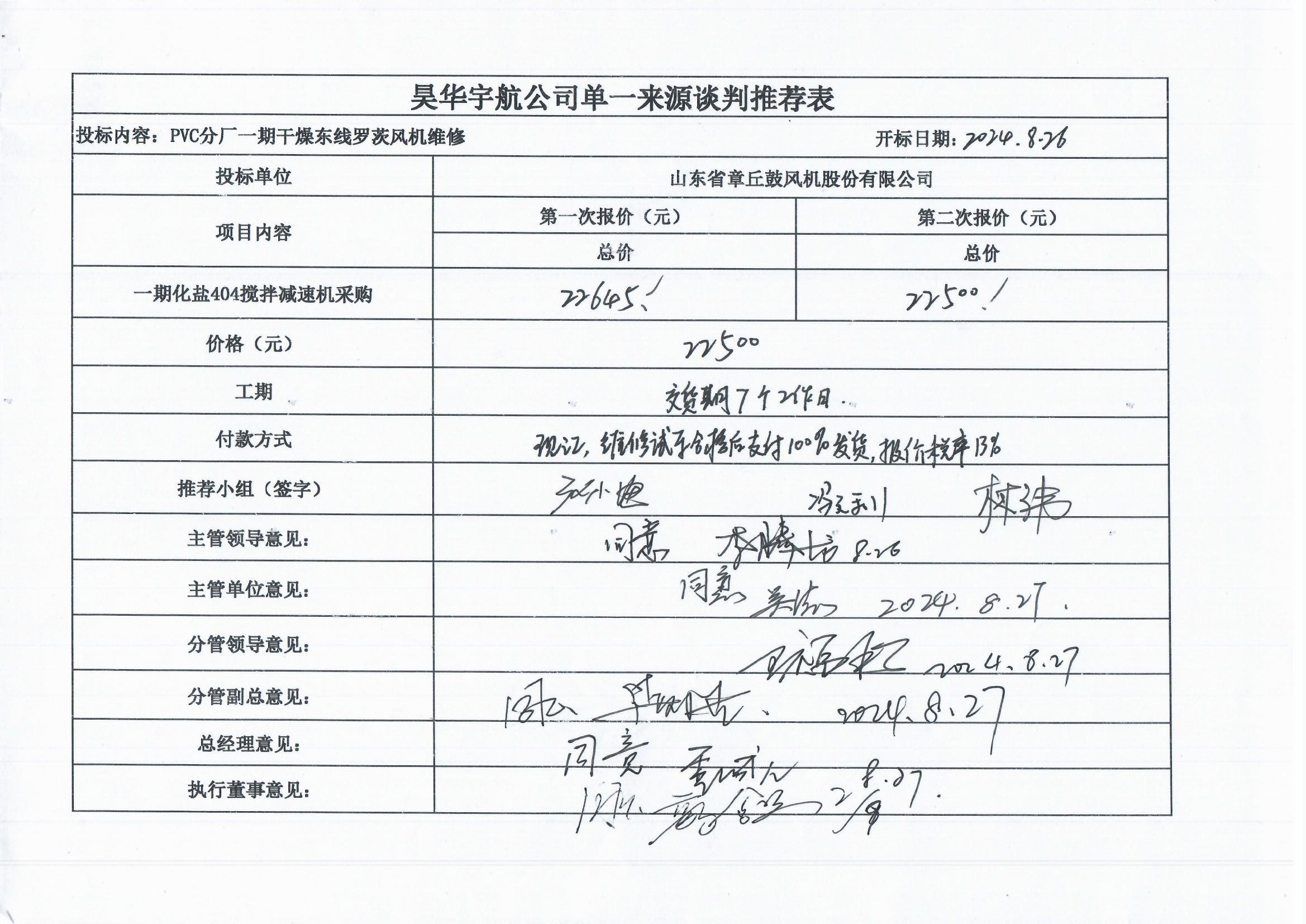 3. 拟定供应商:山东省章丘鼓风机股份有限公司