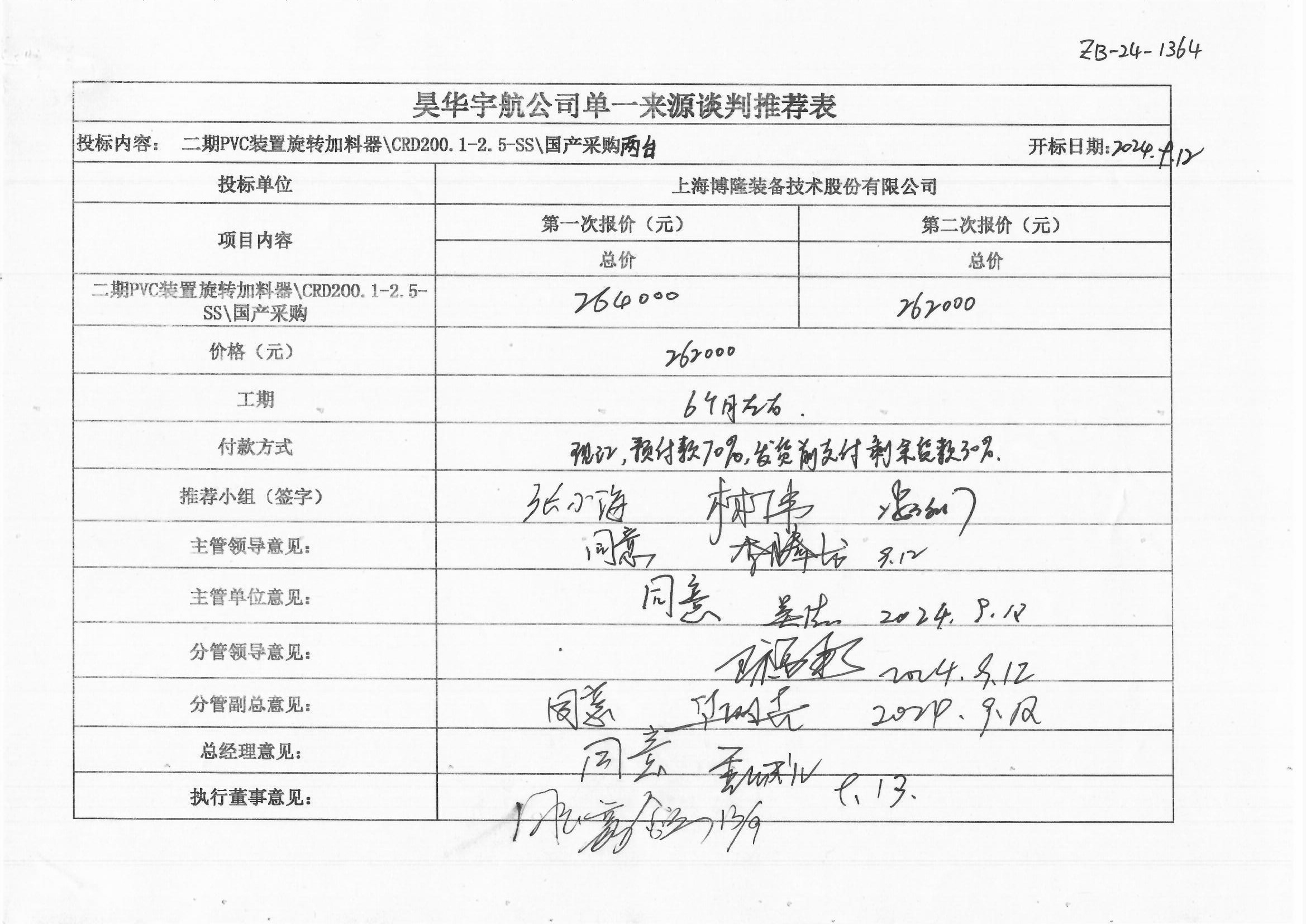 1. 项目名称:二期PVC装置旋转加料器\CRD200.1-2.5-SS\国产采购