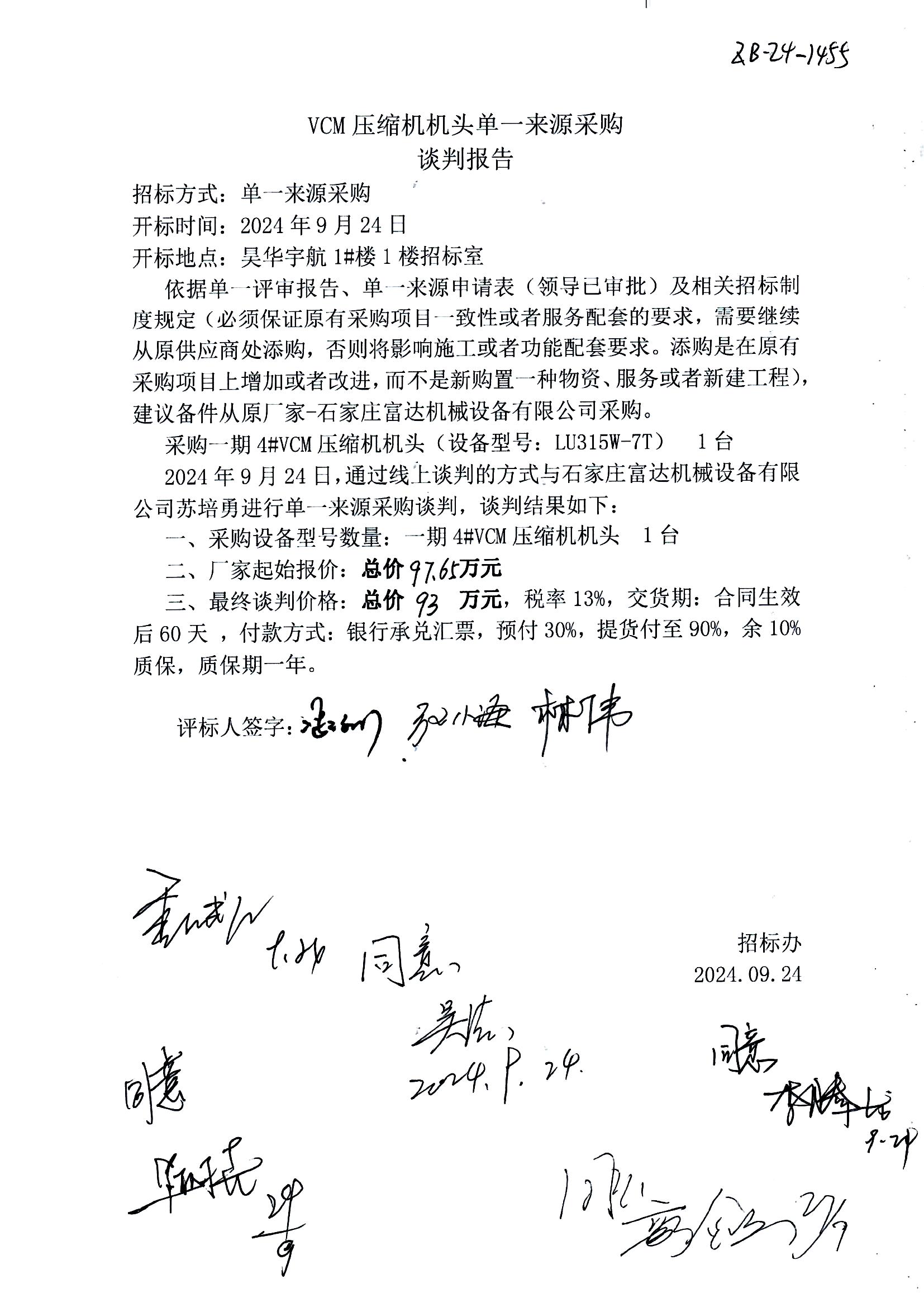 1. 项目名称:一期4#VCM压缩机机头采购