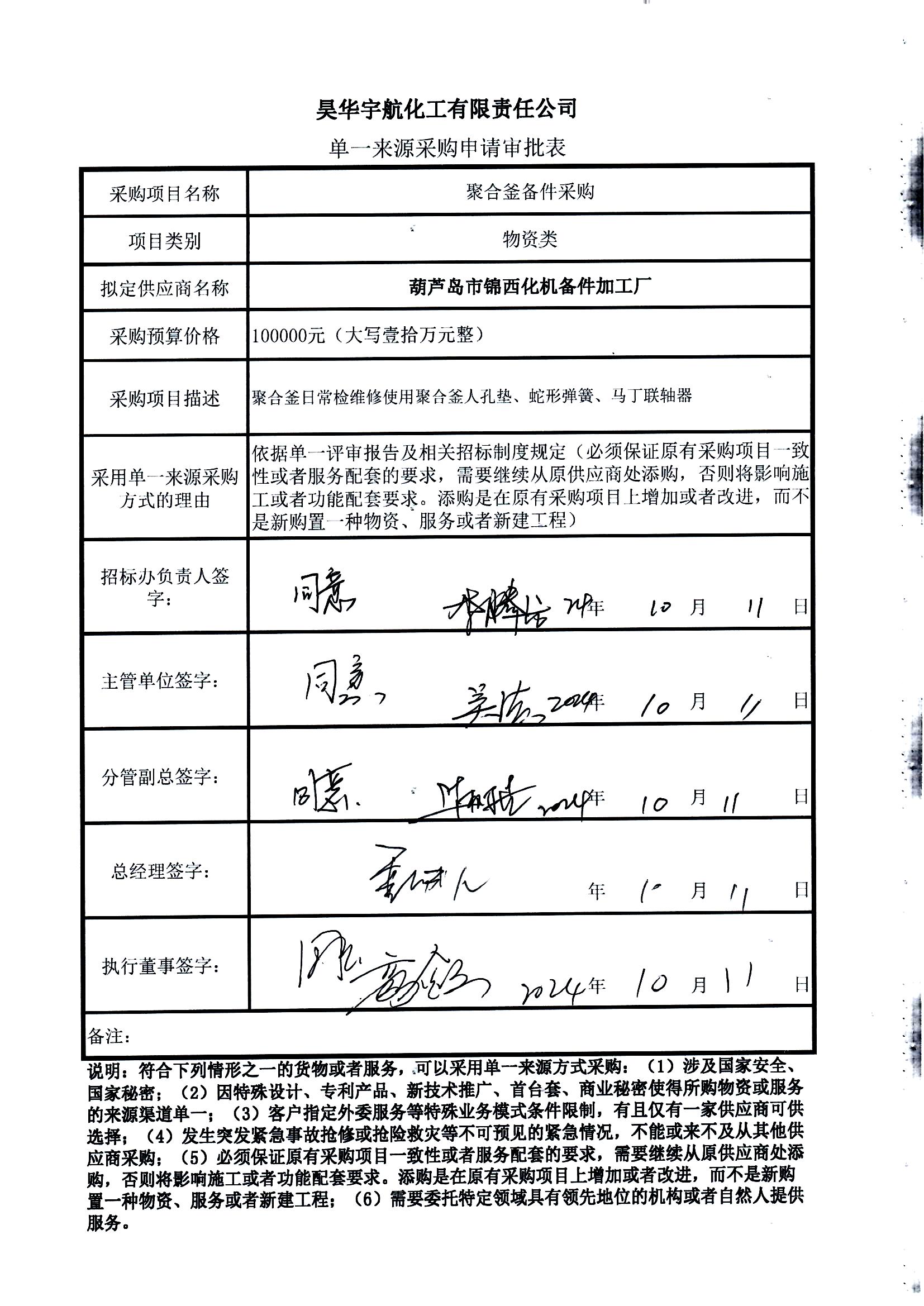3. 拟定供应商:葫芦岛市锦西化机备件加工厂