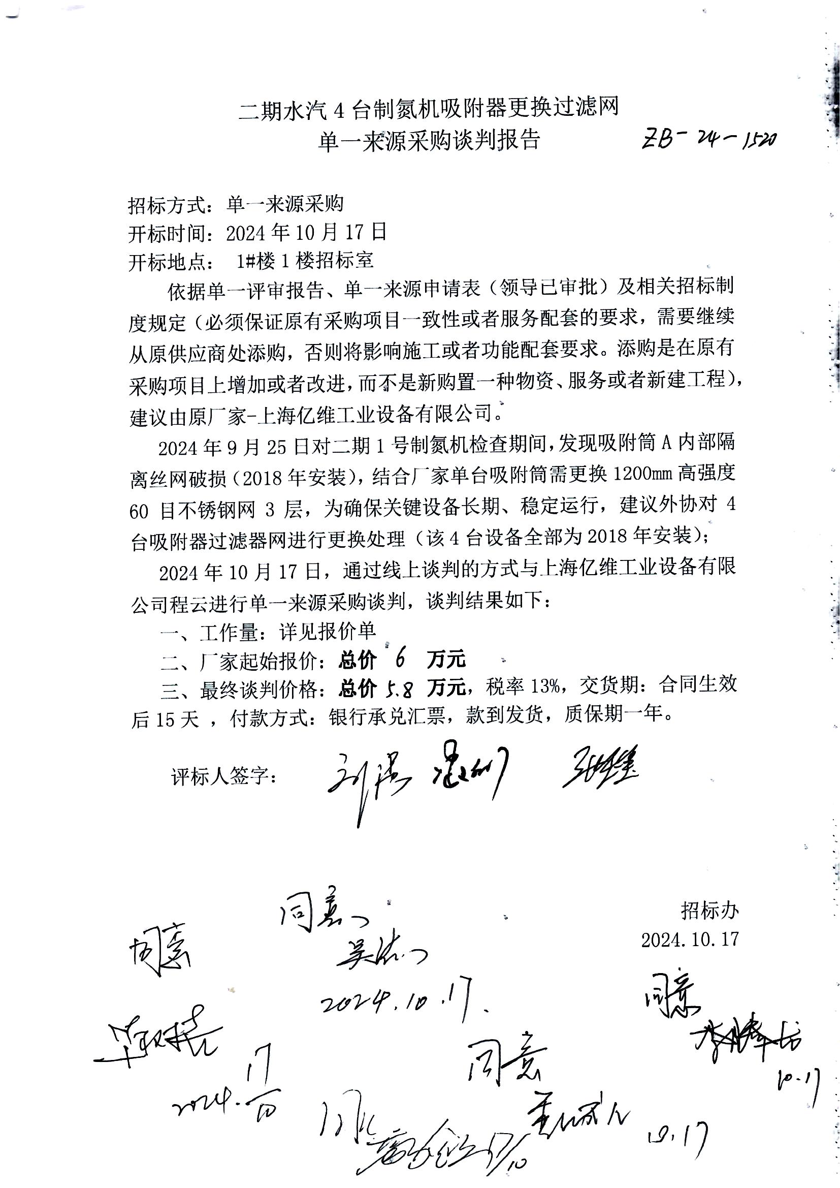1. 项目名称:二期水汽4台制氮机吸附器更换过滤网