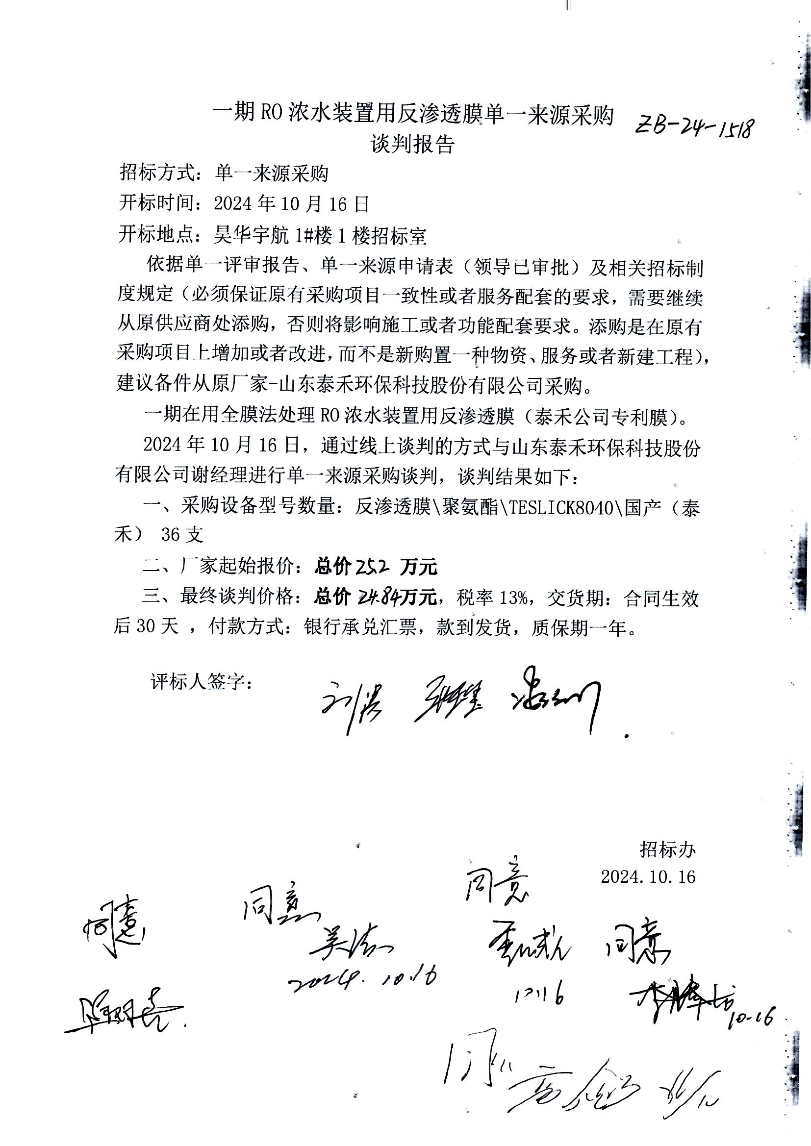 3. 拟定供应商:山东泰禾环保科技股份有限公司