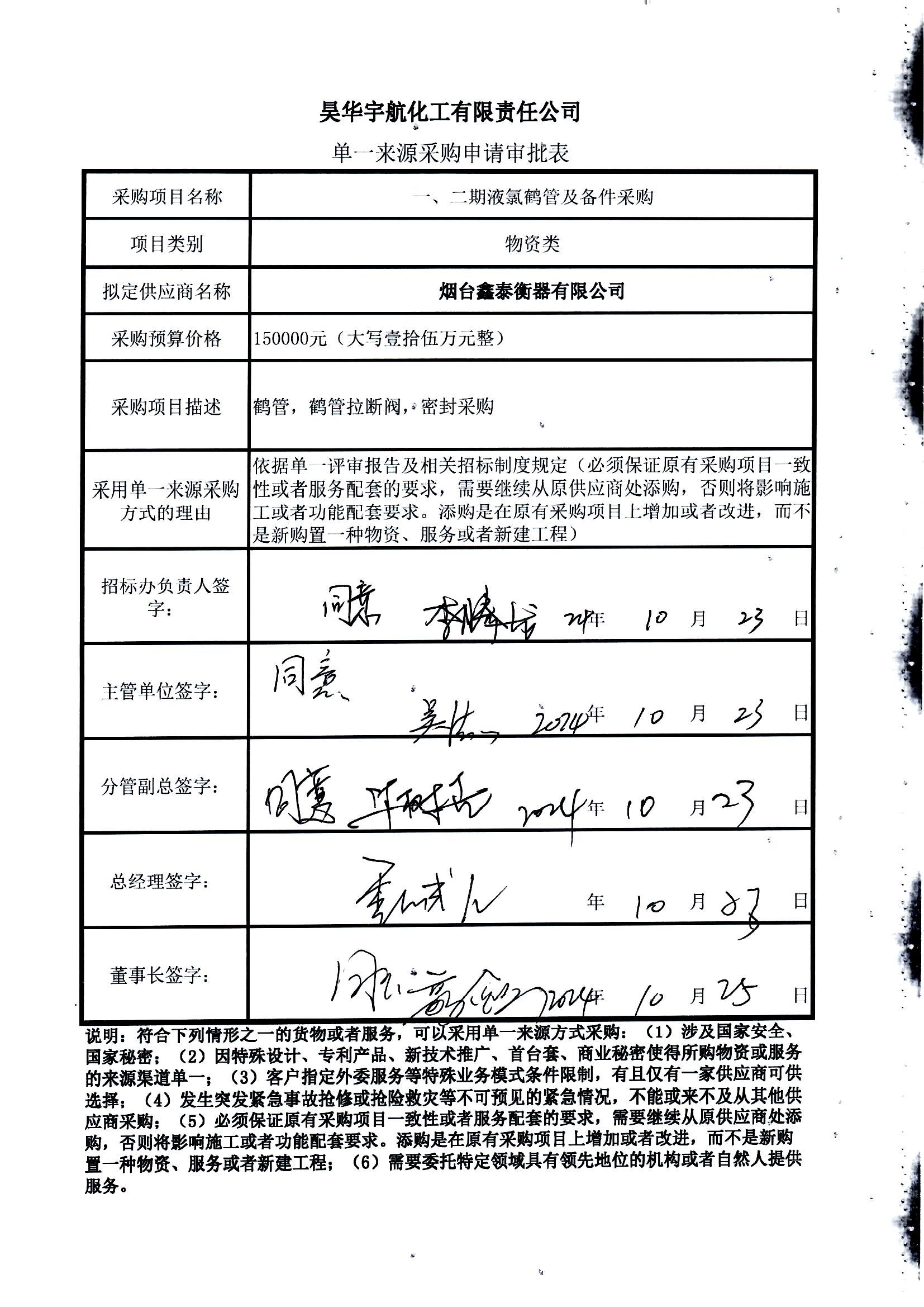 1. 项目名称:一、二期液氯鹤管及备件采购