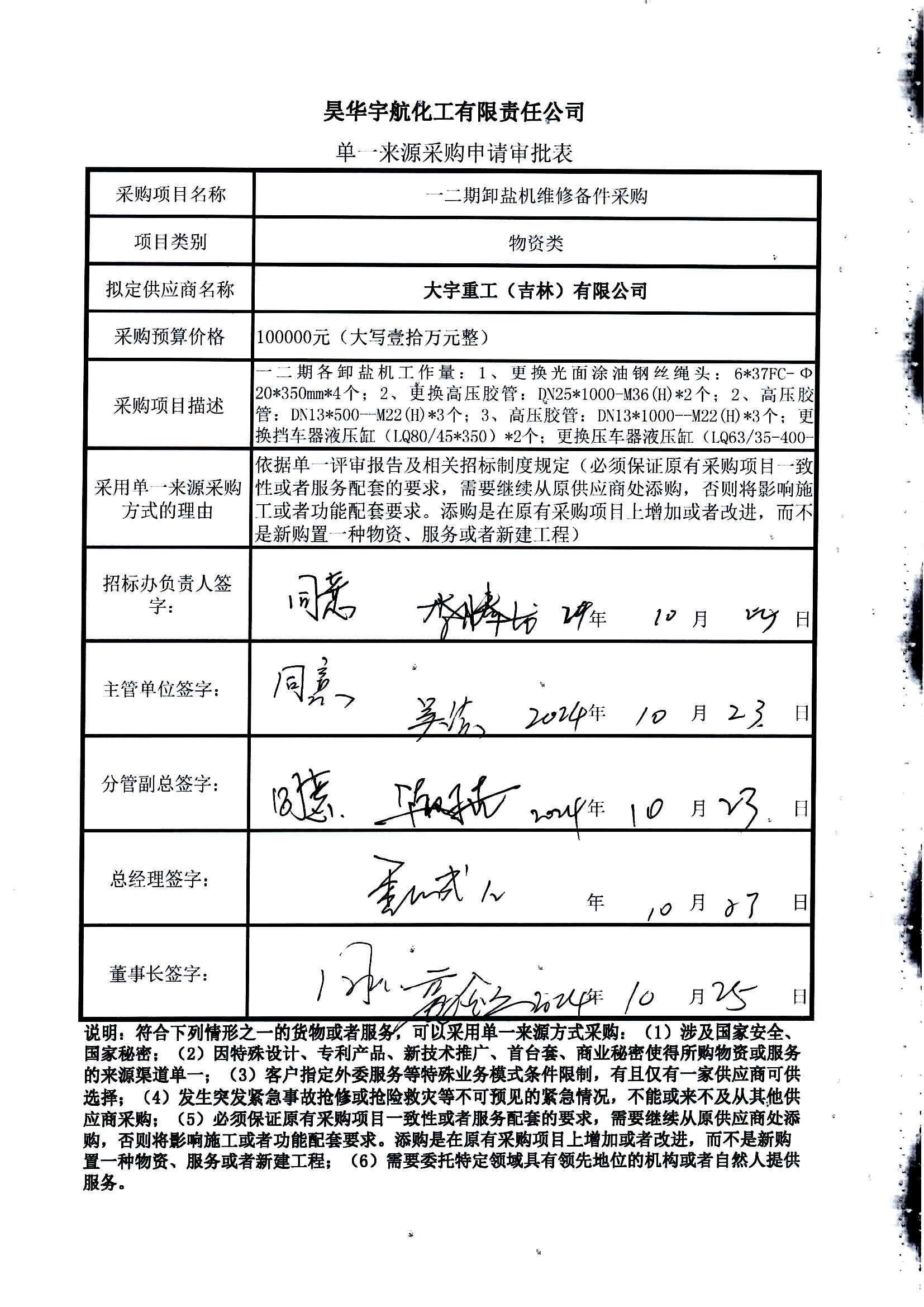 3. 拟定供应商:大宇重工(吉林)有限公司