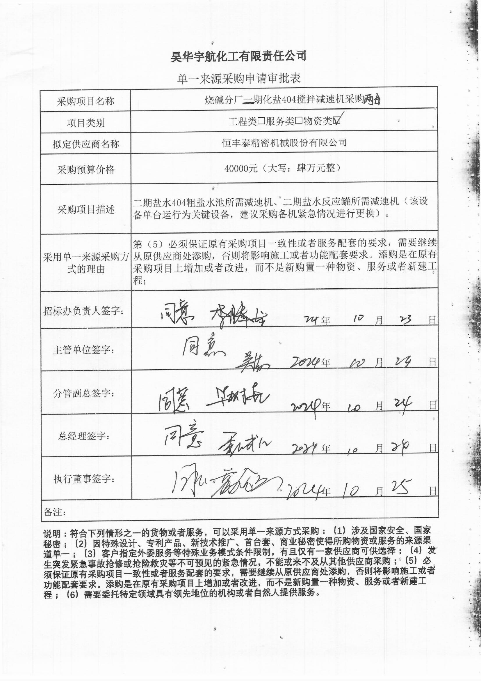 1. 项目名称:烧碱分厂二期化盐404搅拌减速机采购