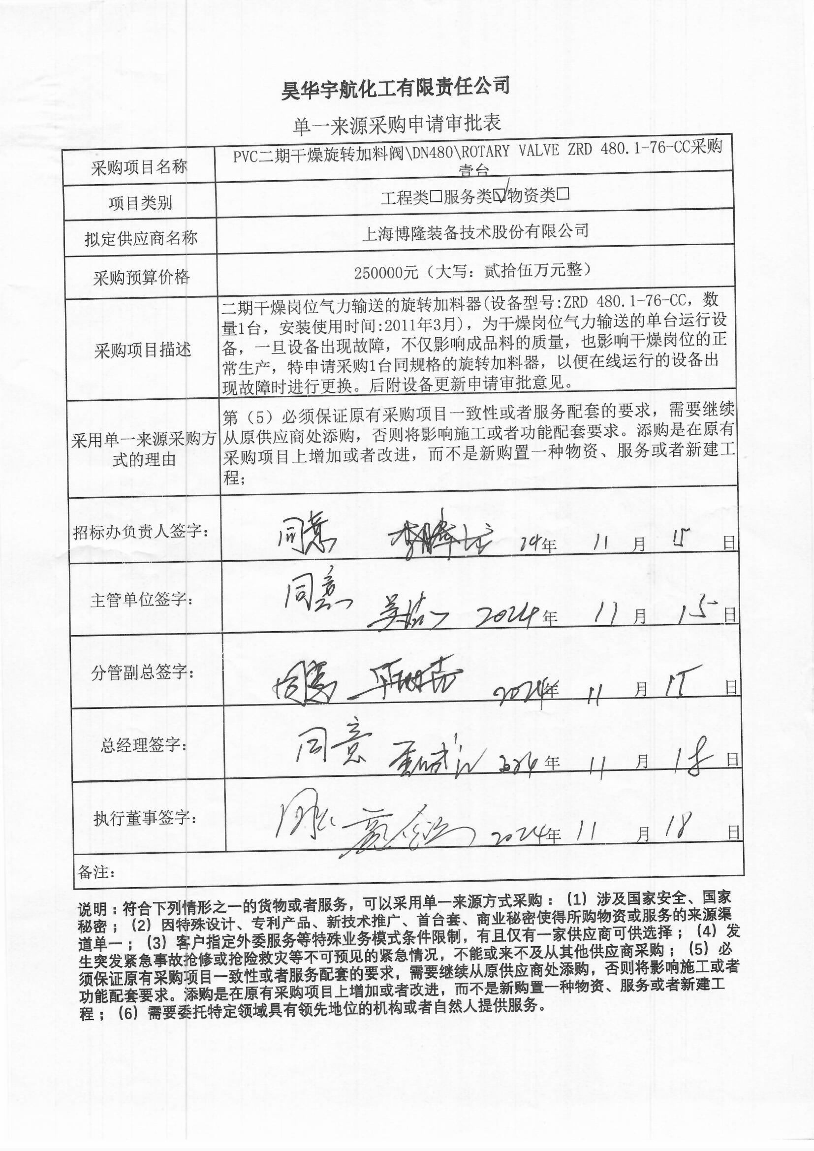 1. 项目名称: PVC二期干燥旋转加料阀\DN480\ROTARY VALVE ZRD 480.1-76-CC采购壹台