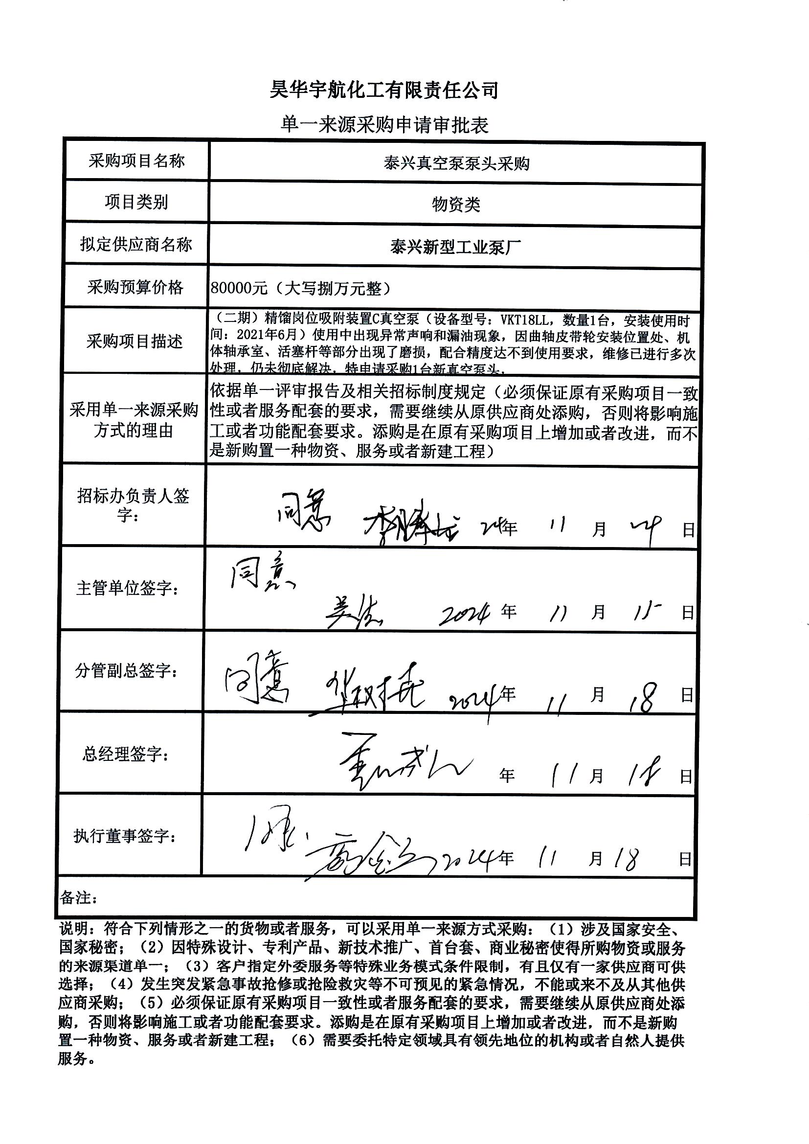 1. 项目名称:泰兴真空泵泵头采购