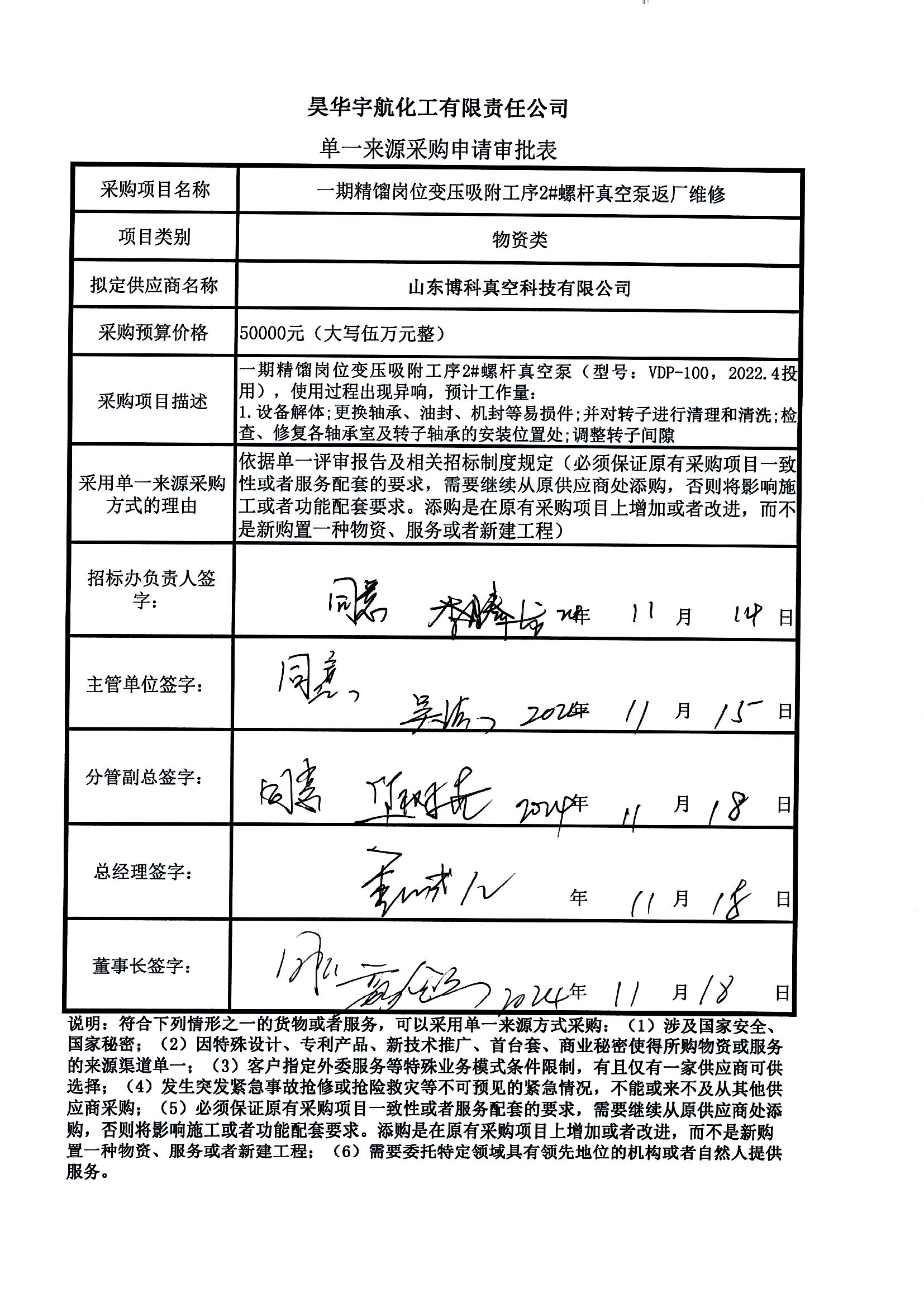 1. 项目名称:一期精馏岗位变压吸附工序2#螺杆真空泵返厂维修